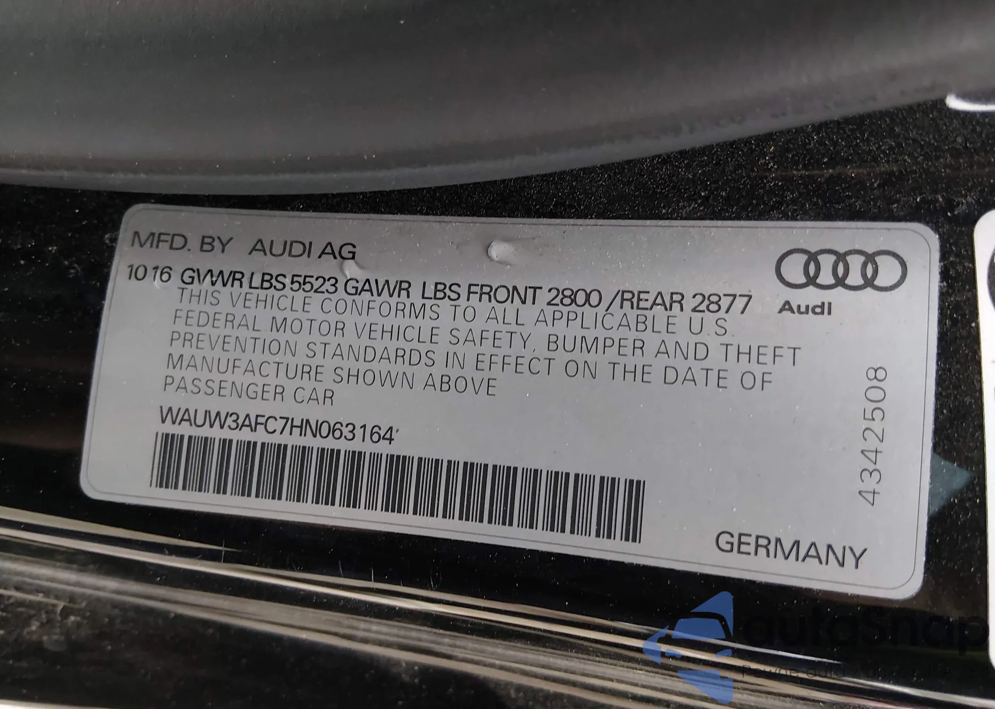 • VIN WAUW3AFC7HN063164