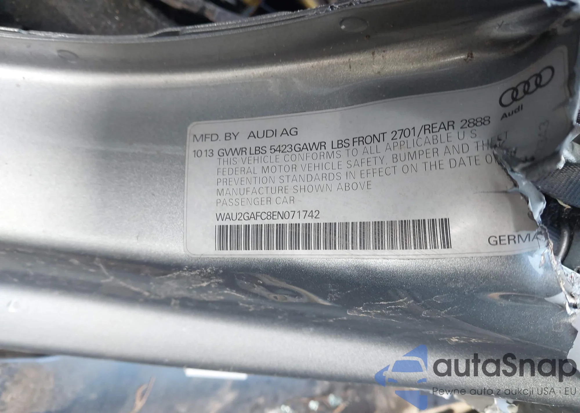 LOT: 43852868 VIN: WAU2GAFC8EN071742