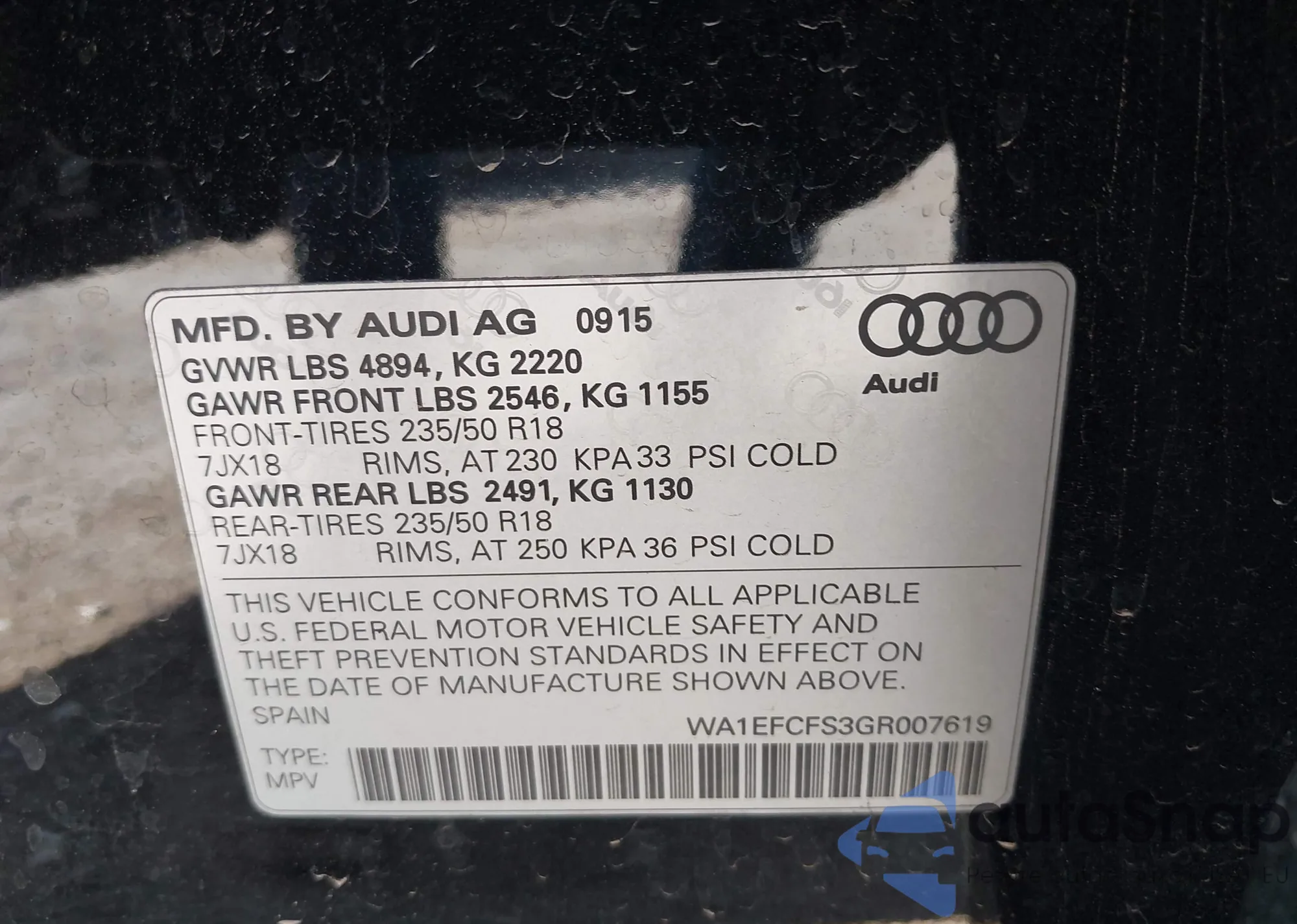 LOT: 92936725 VIN: WA1EFCFS6GR009235