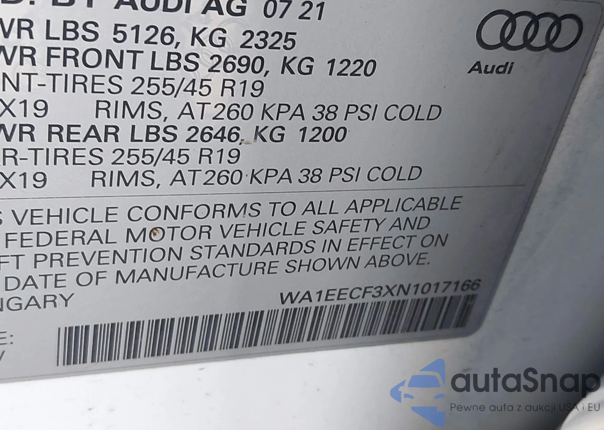 LOT: 44466598 VIN: WA1EECF3XN1017166