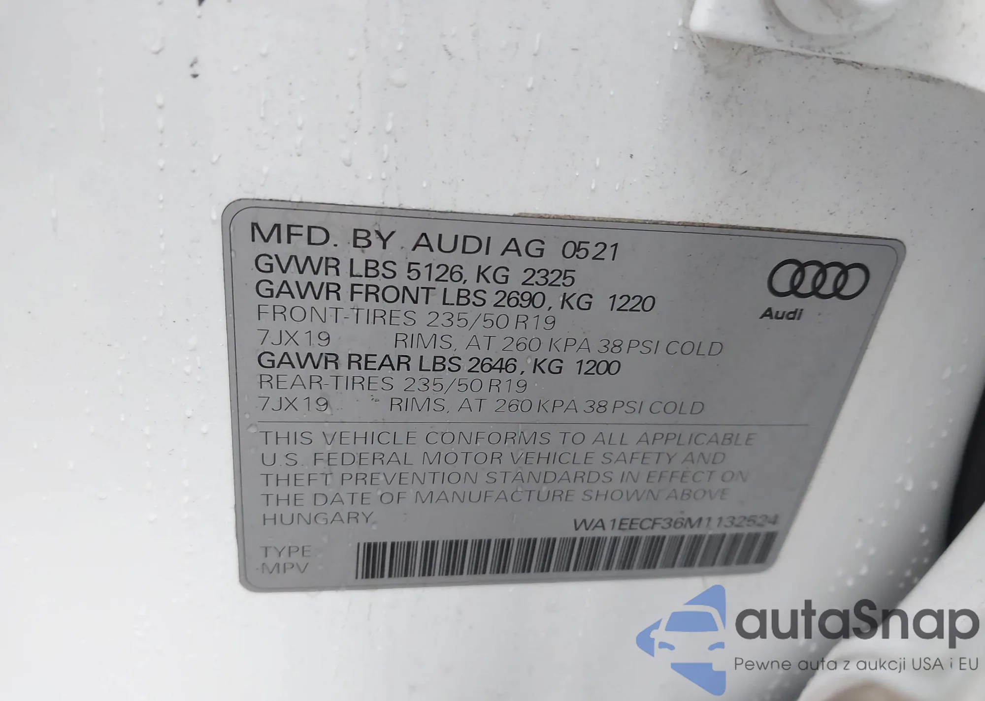 LOT: 44484733 VIN: WA1EECF36M1132524