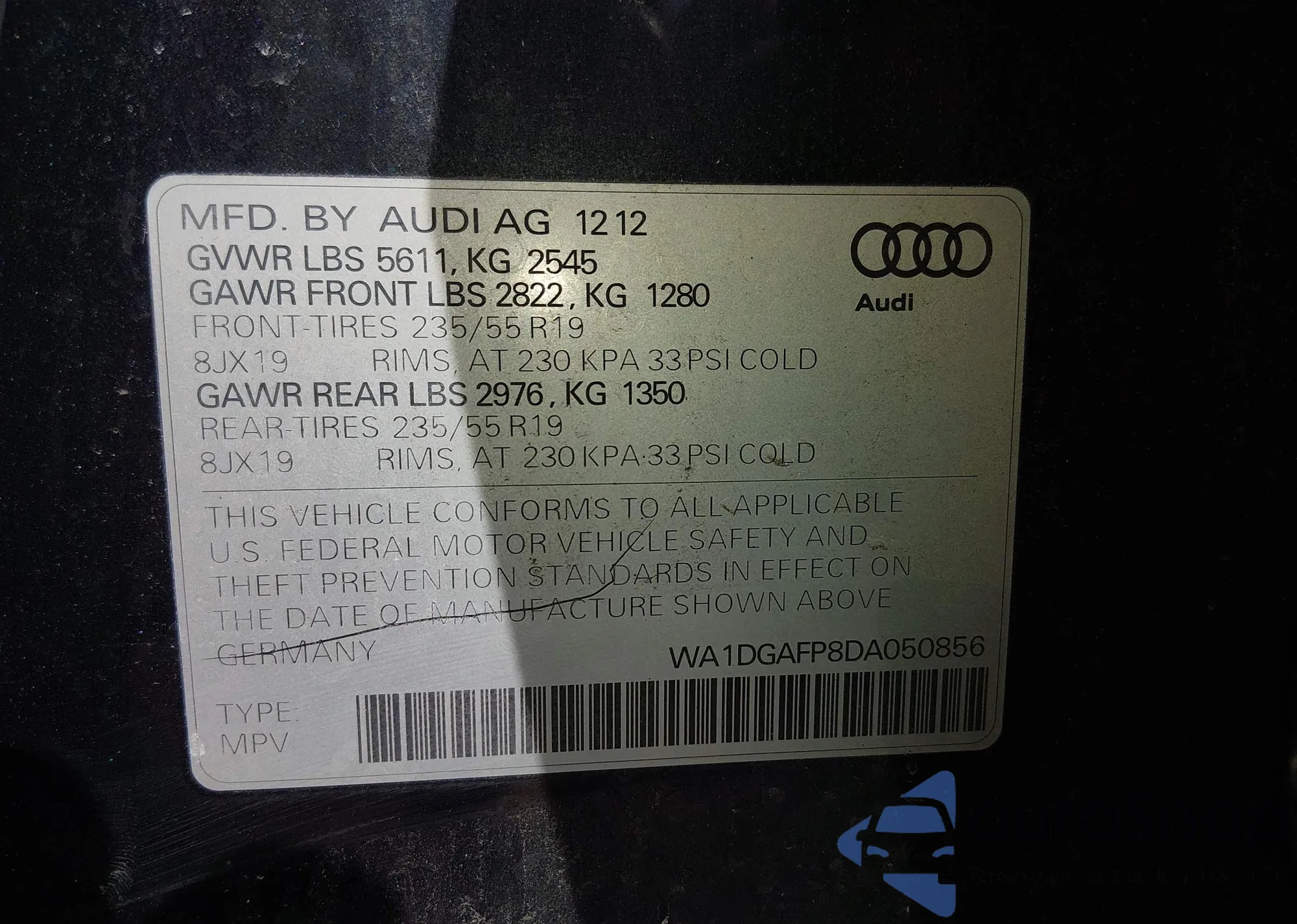 • VIN WA1DGAFP8DA050856