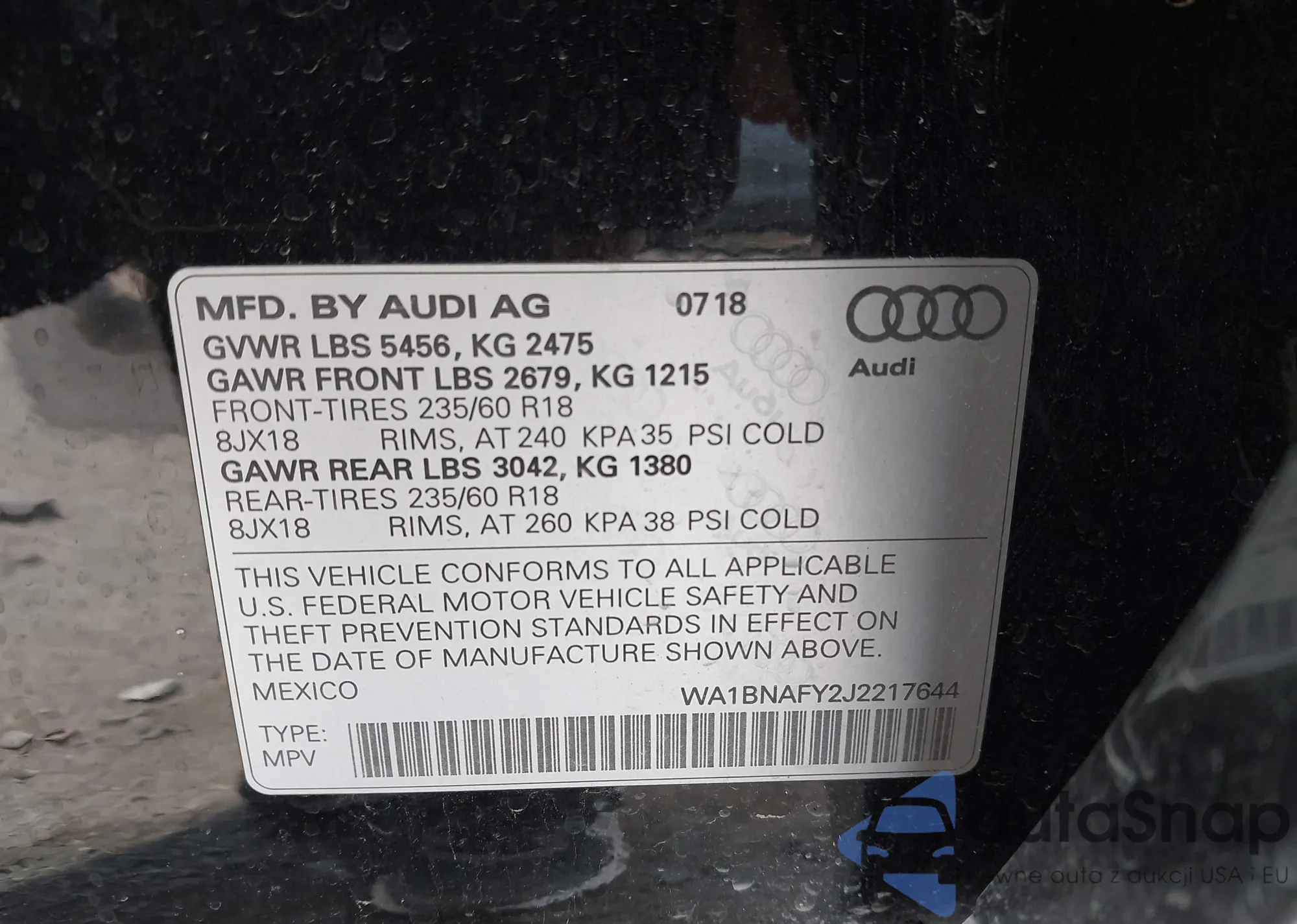 LOT: 44144857 VIN: WA1BNAFY2J2217644