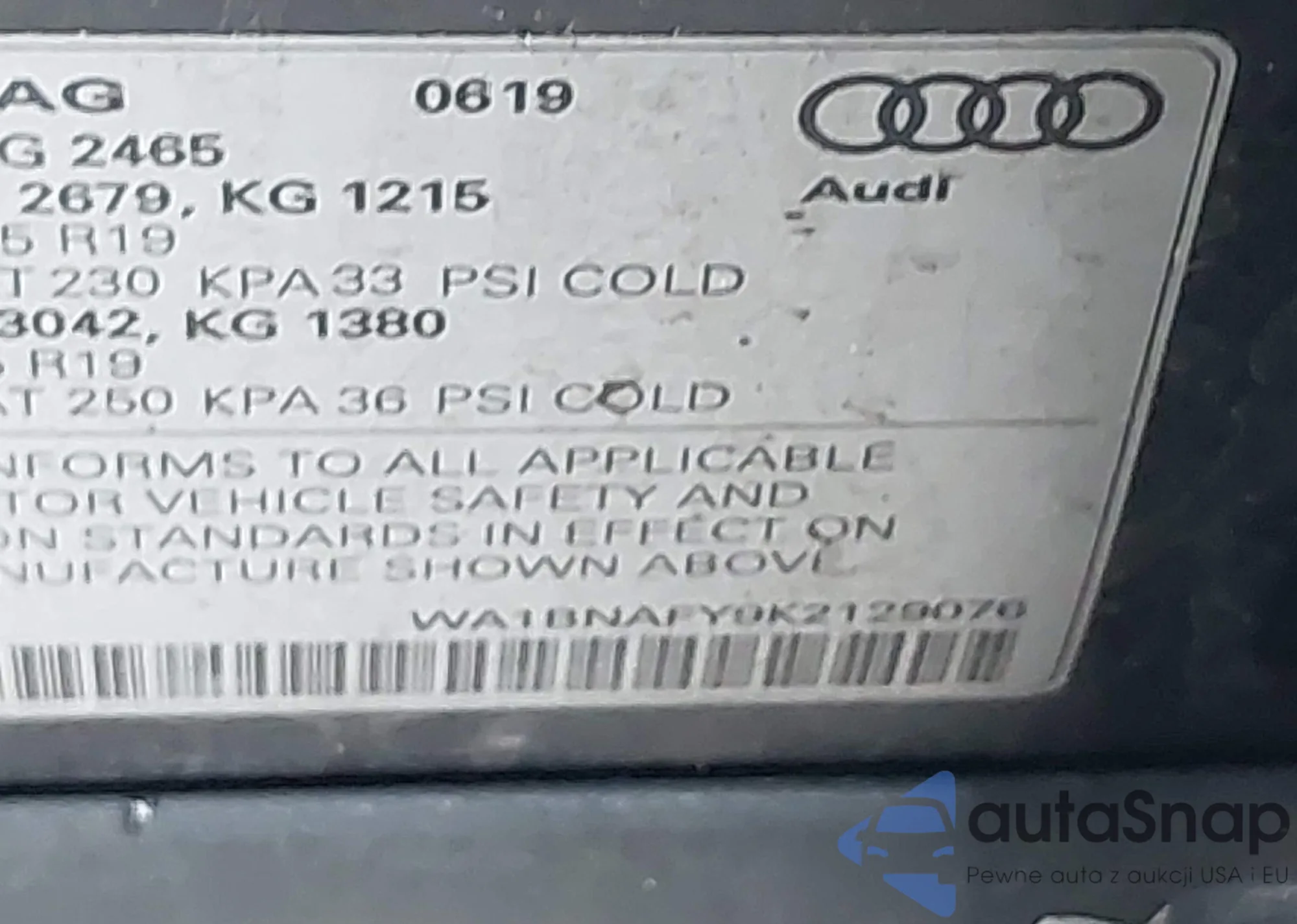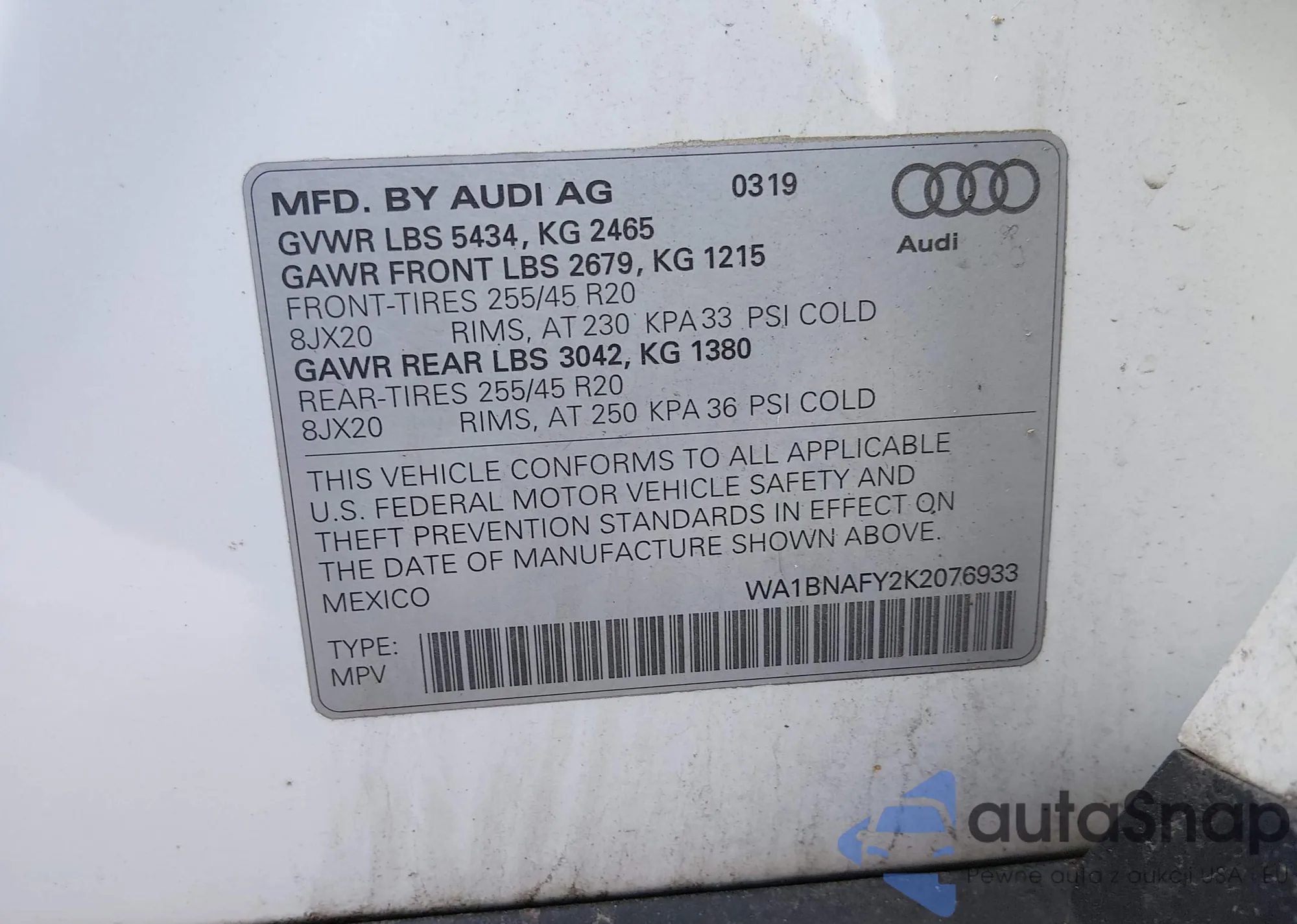 LOT: 44430126 VIN: WA1BNAFY2K2076933
