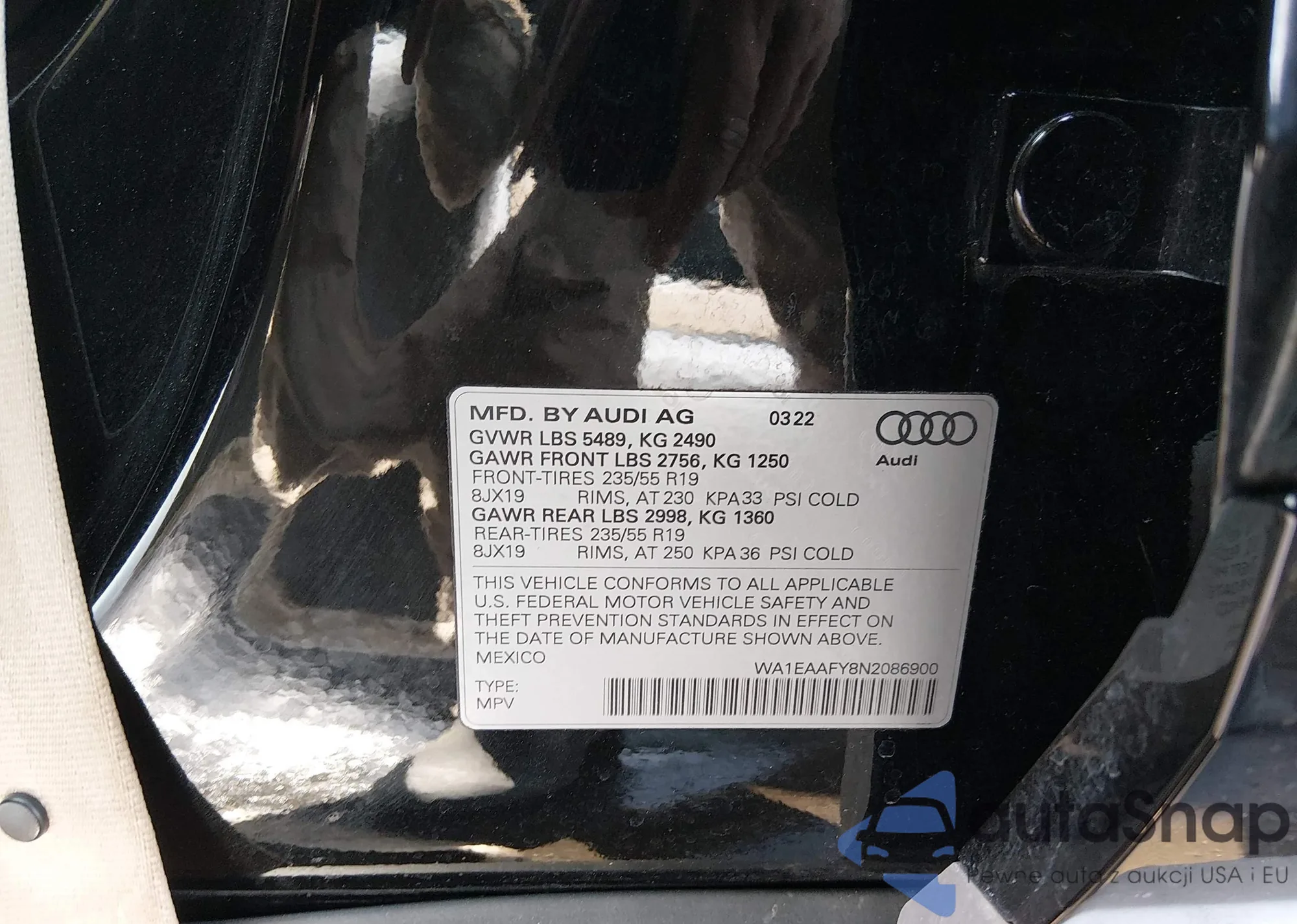 LOT: 44294567 VIN: WA1EAAFY8N2086900