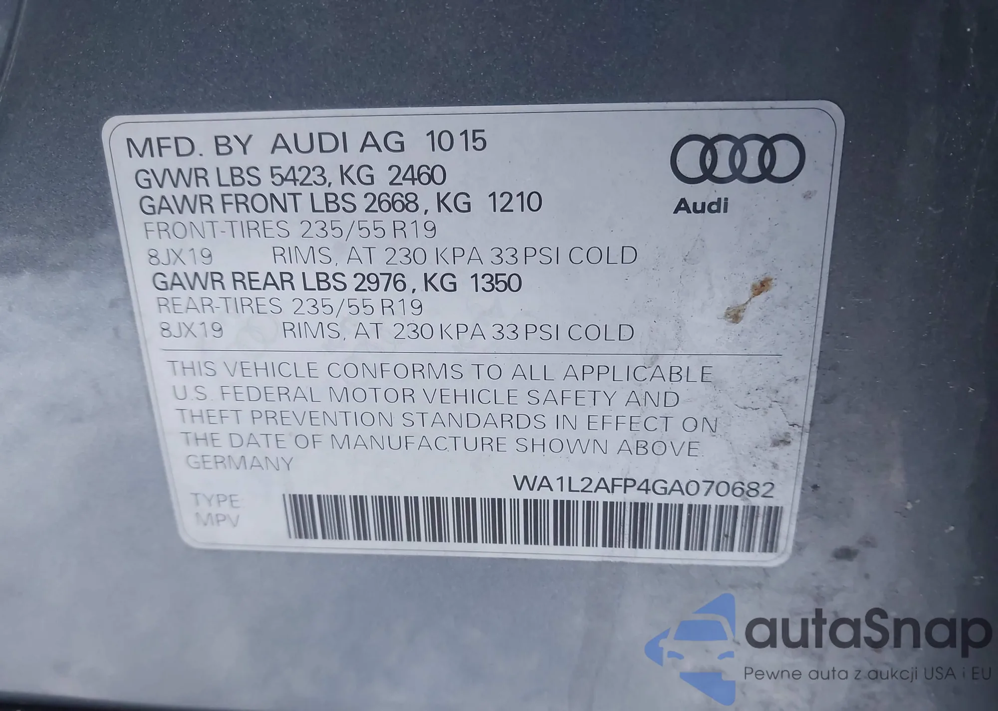 • VIN WA1L2AFPXGA073103