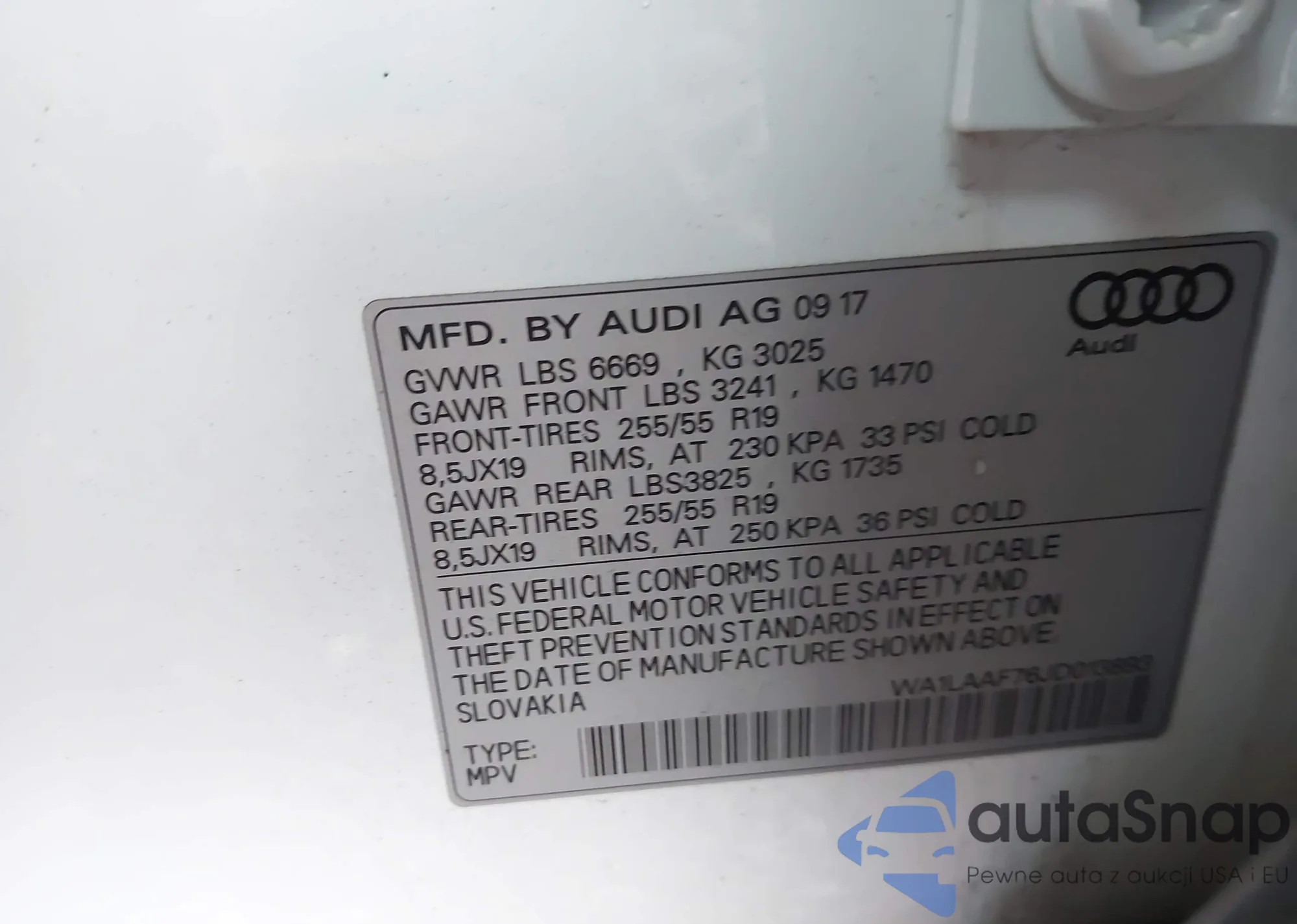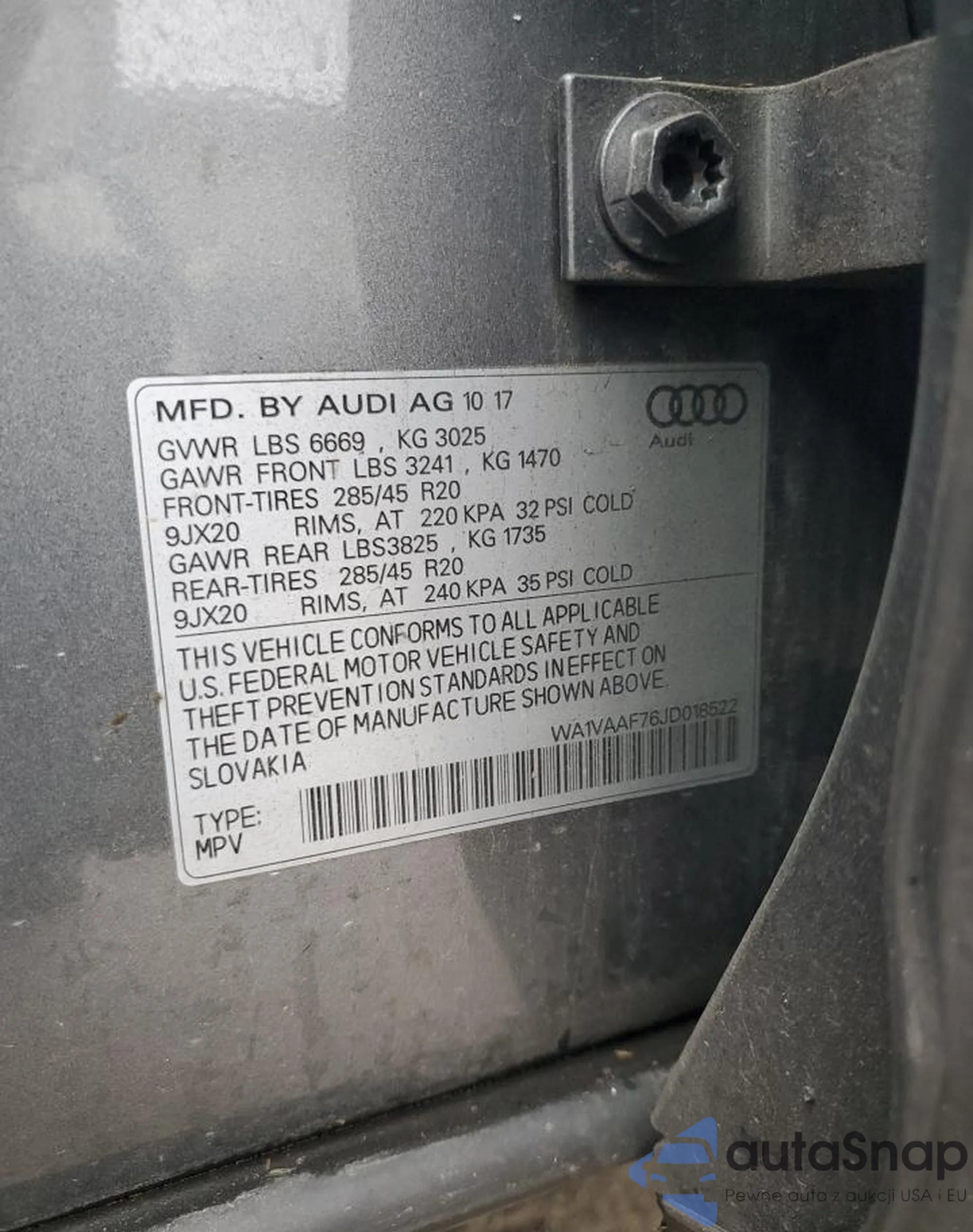 LOT: 90330845 VIN: WA1VAAF76JD018522