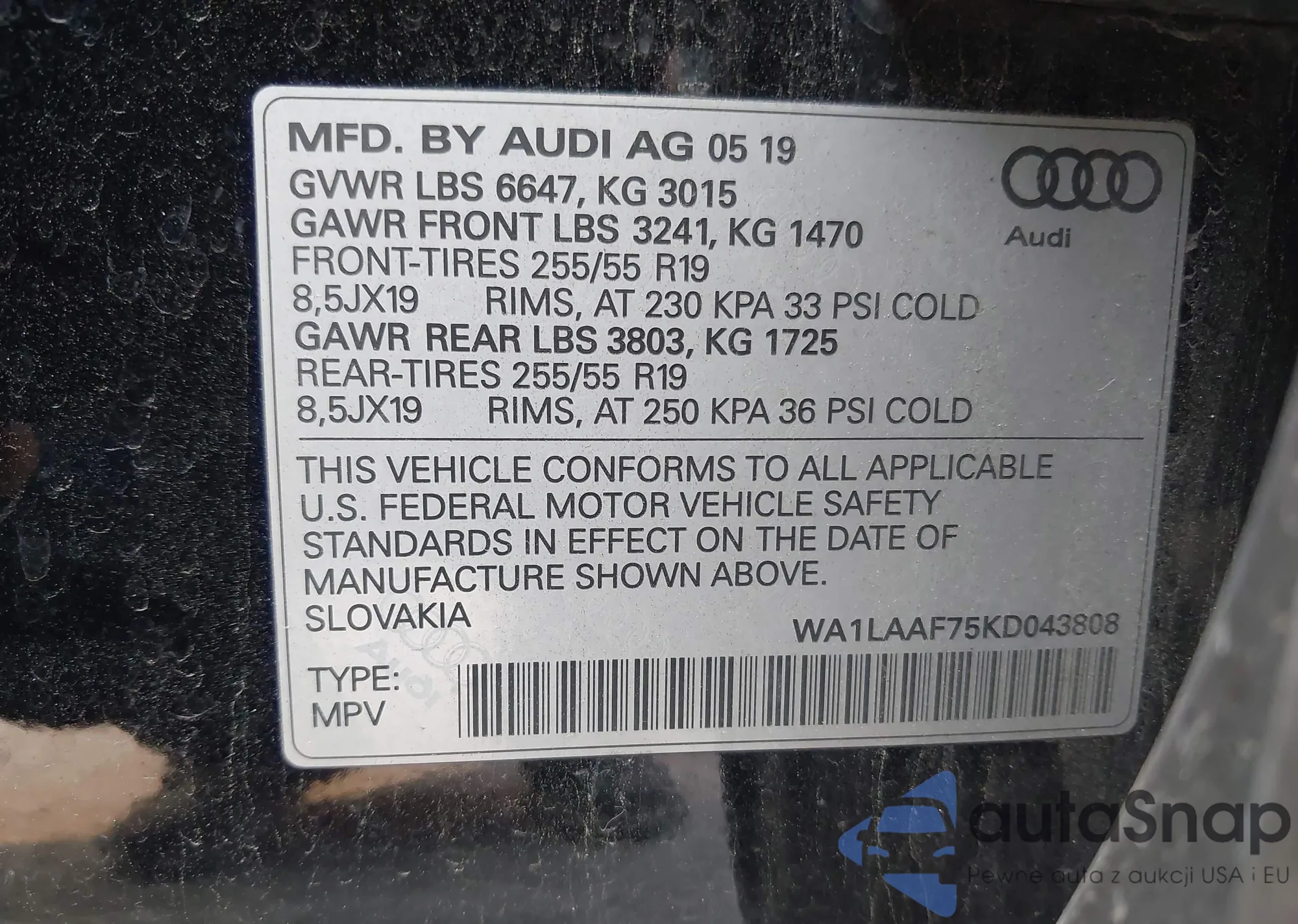 LOT: 42449153 VIN: WA1LAAF75KD043808
