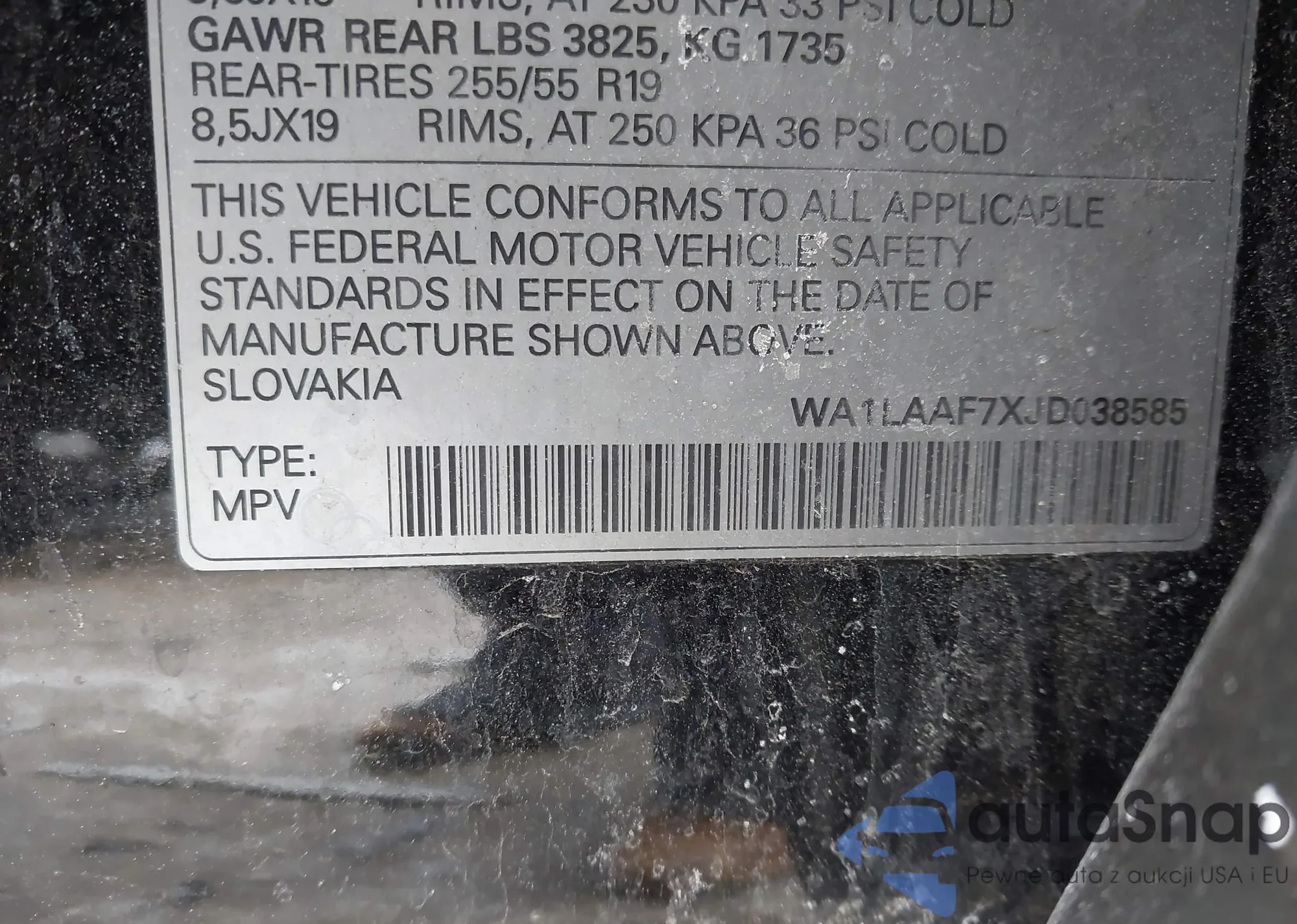 • VIN WA1LAAF7XJD038585