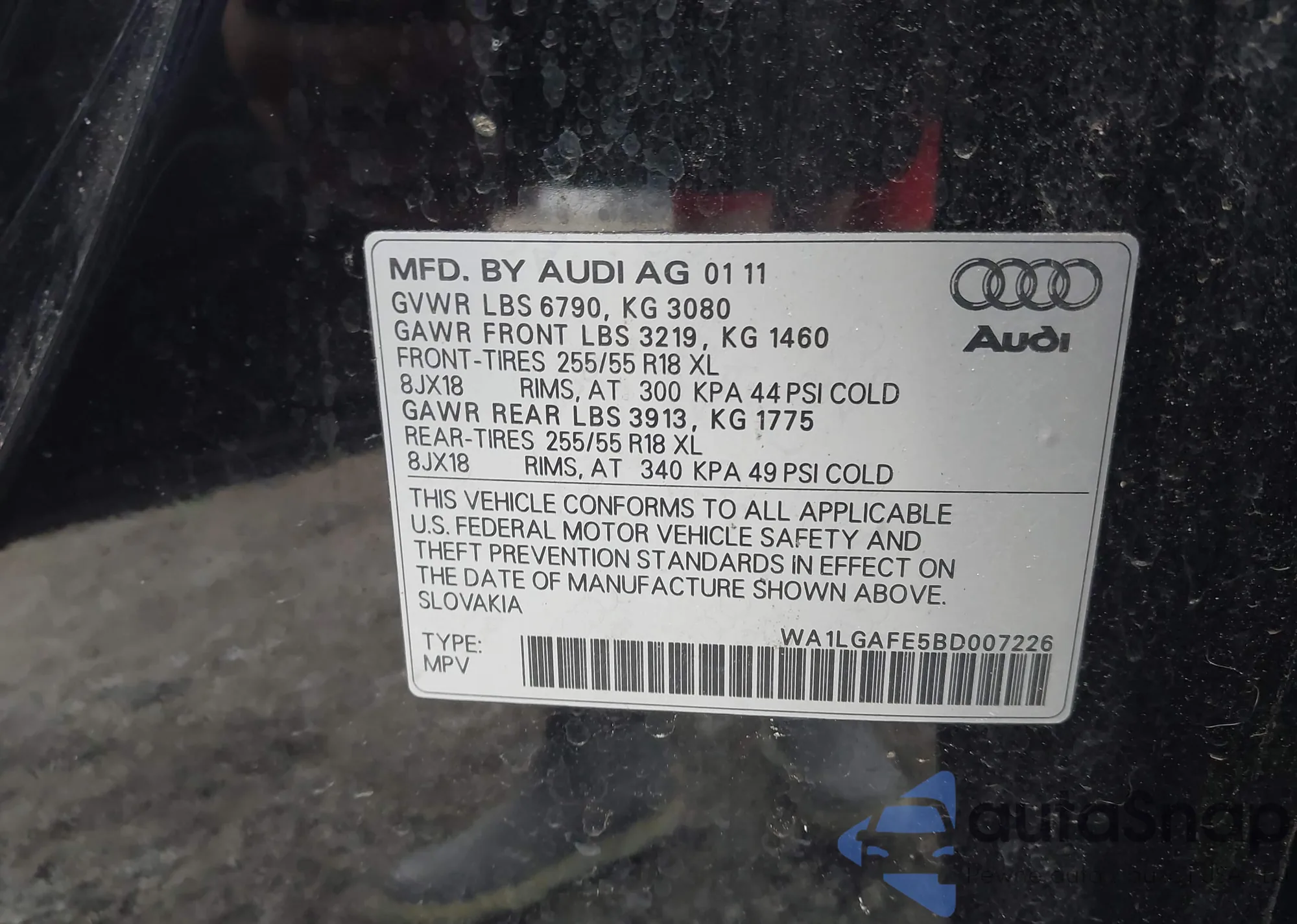 • VIN WA1LAAF70JD027708