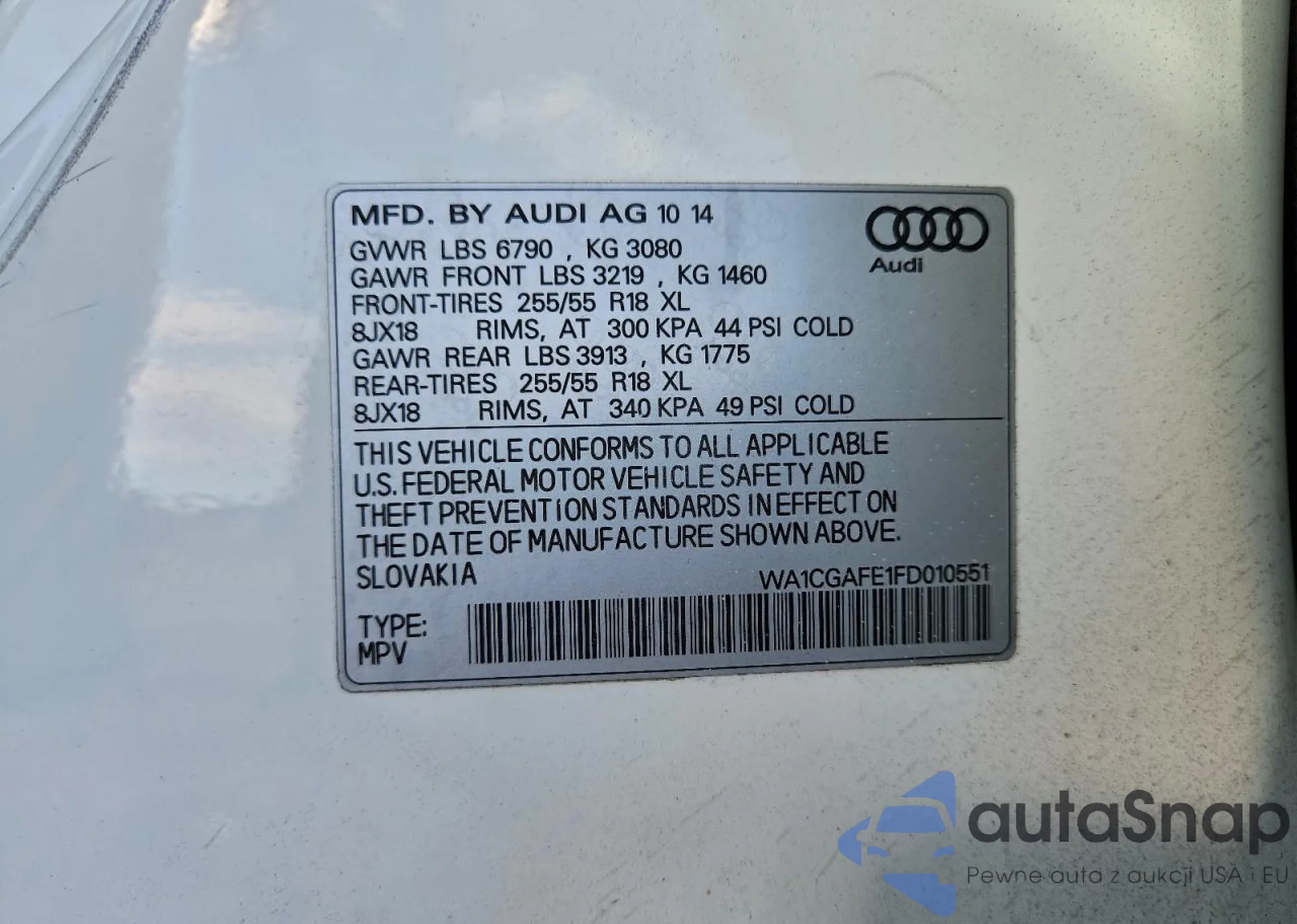 LOT: 95023175 VIN: WA1CGAFE1FD010551