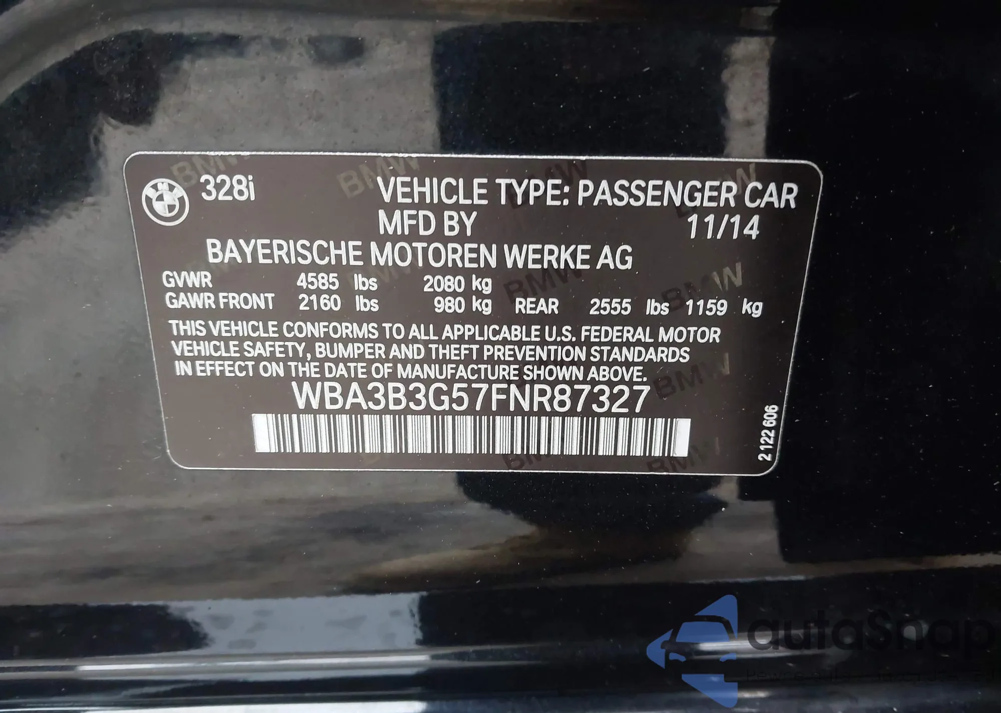 • VIN WBA3B3G57FNR87327