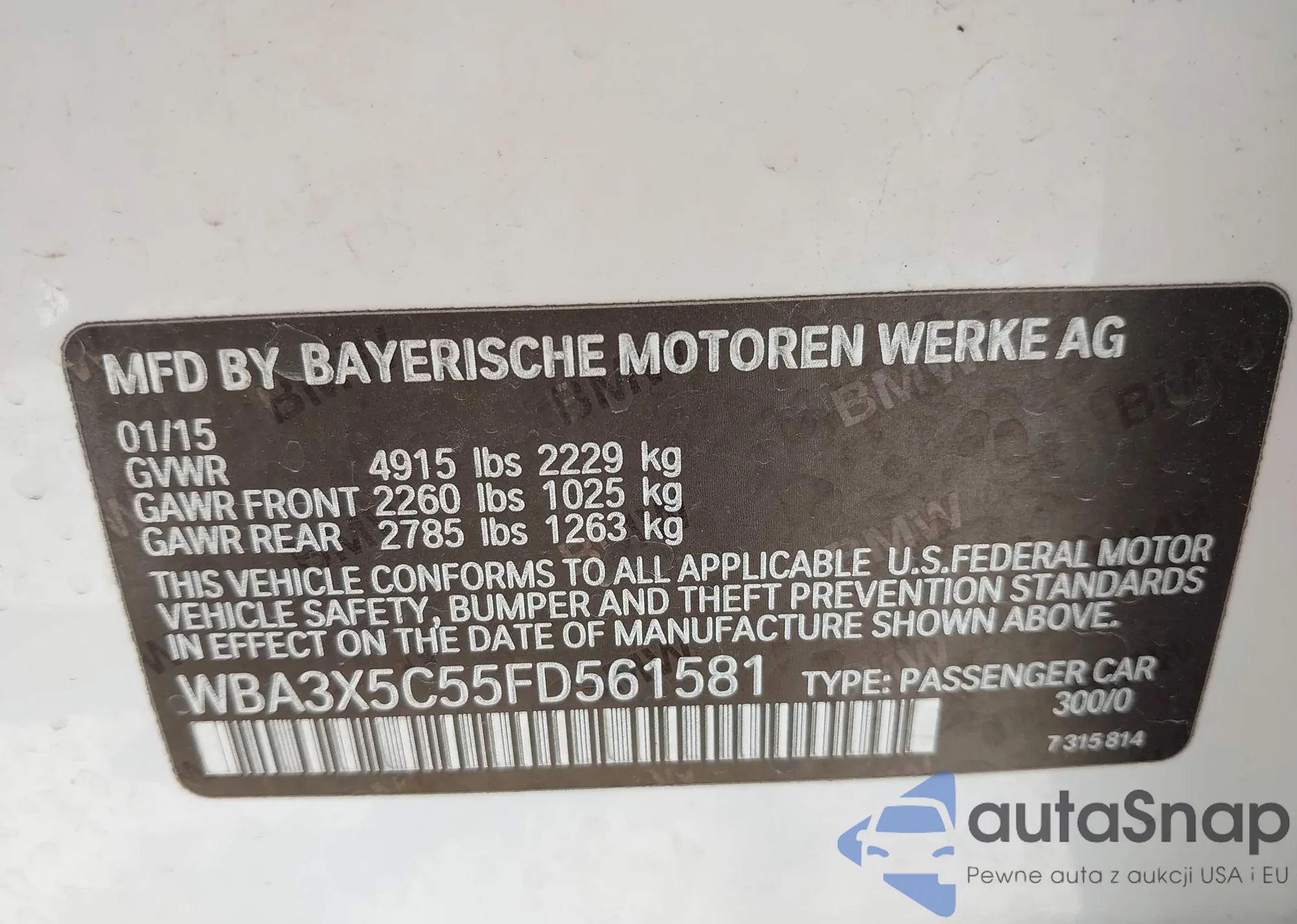 • VIN WBA3X5C55FD561581