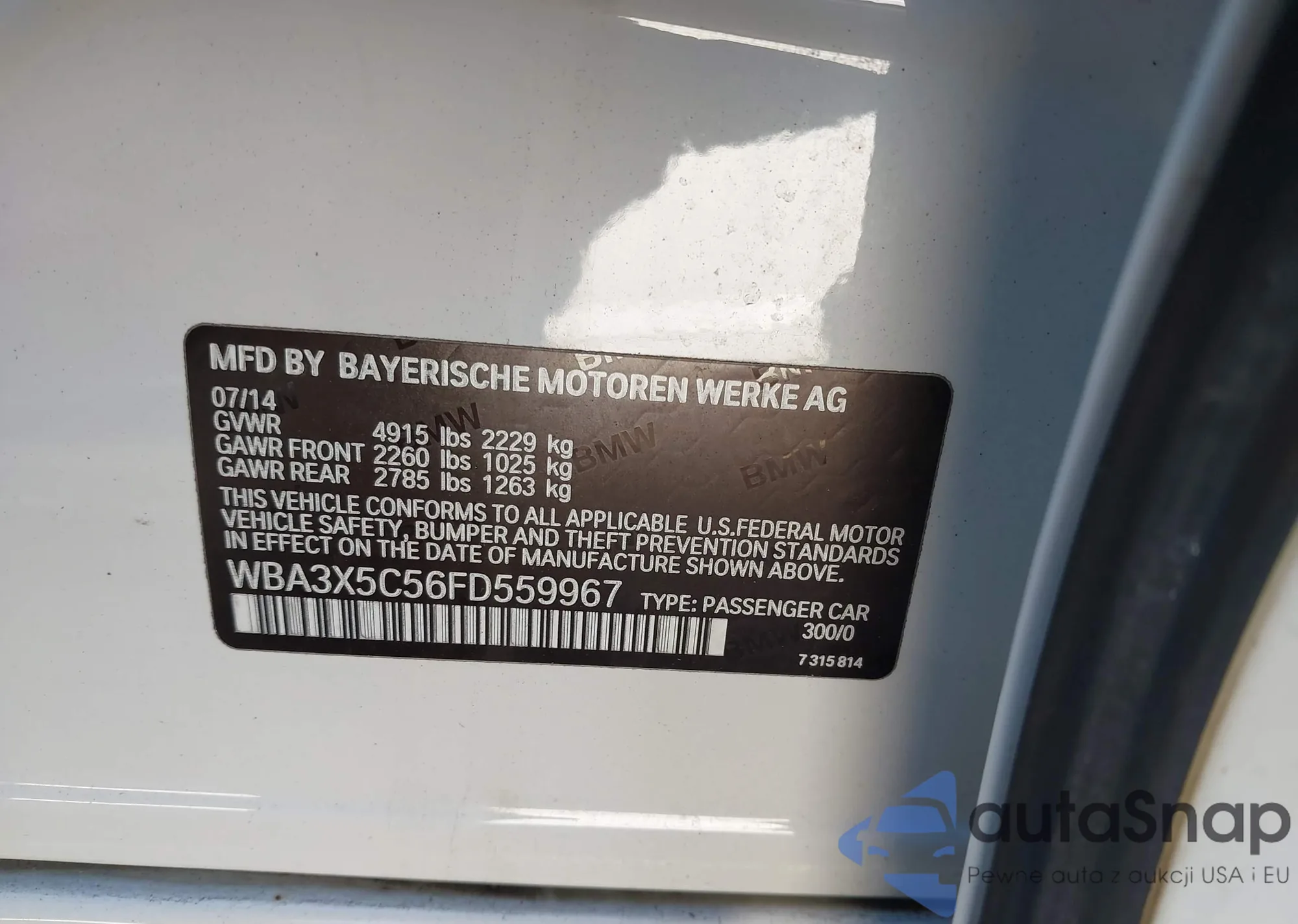 • VIN WBA3X5C56FD559967