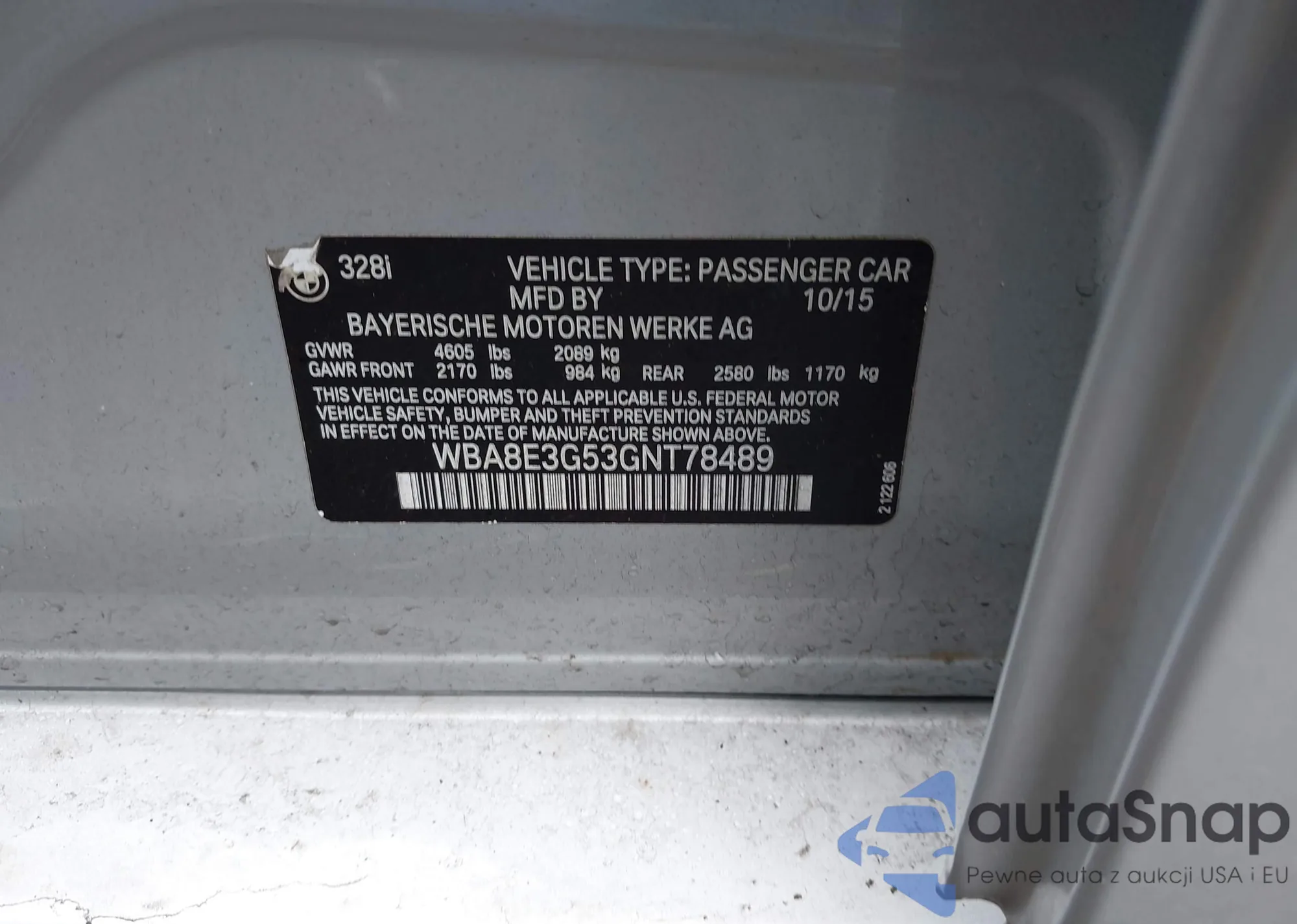 • VIN WBA8E3G53GNT78489