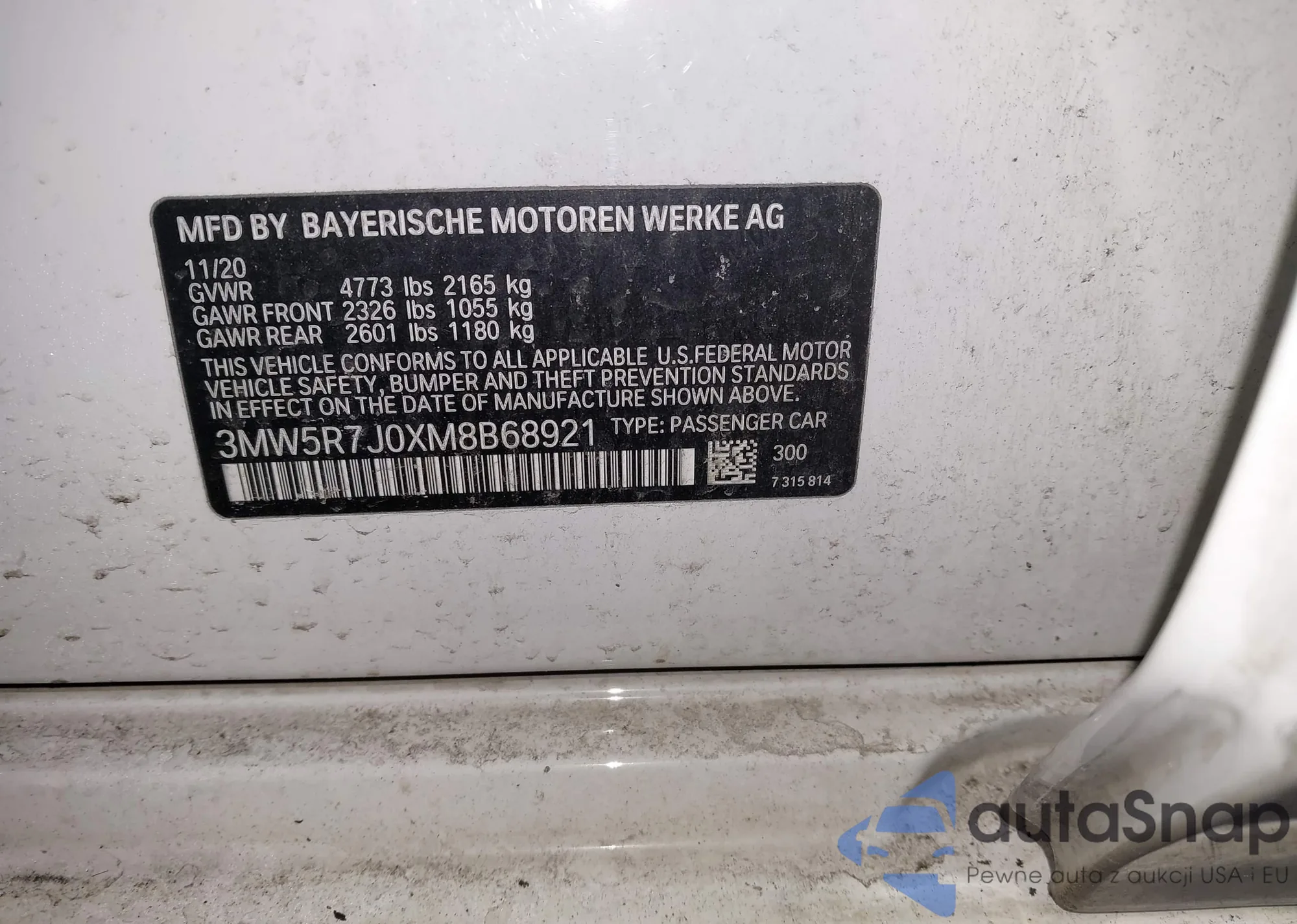 • VIN 3MW5R7J0XM8B68921