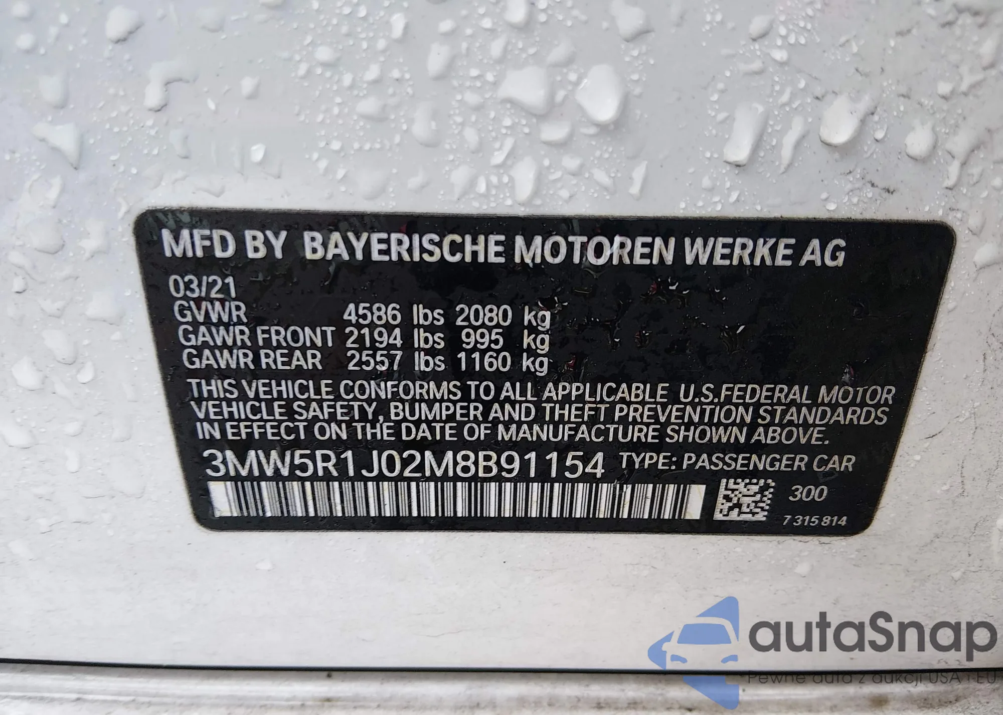 • VIN 3MW5R1J02M8B91154