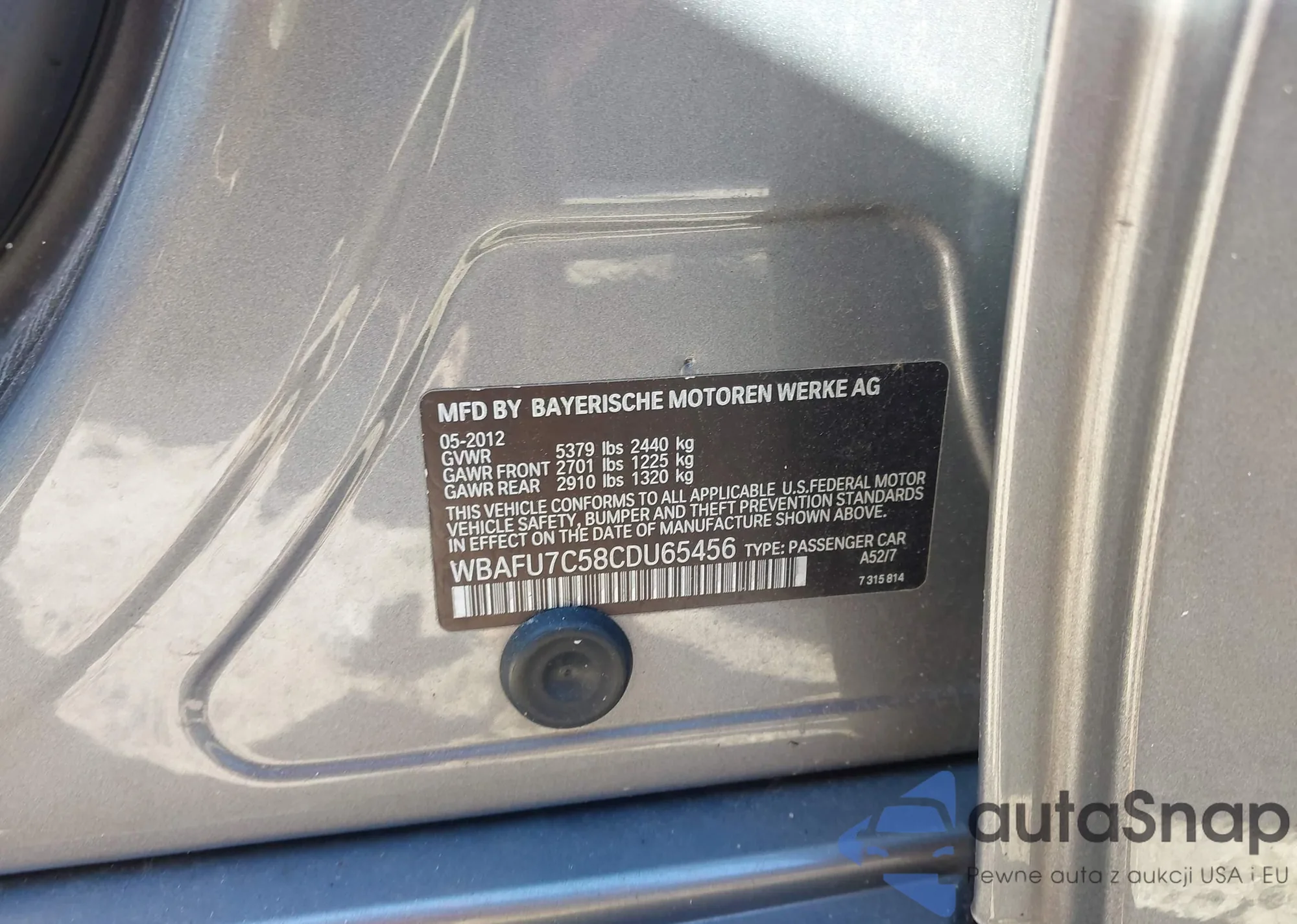 • VIN WBAFU7C58CDU65456
