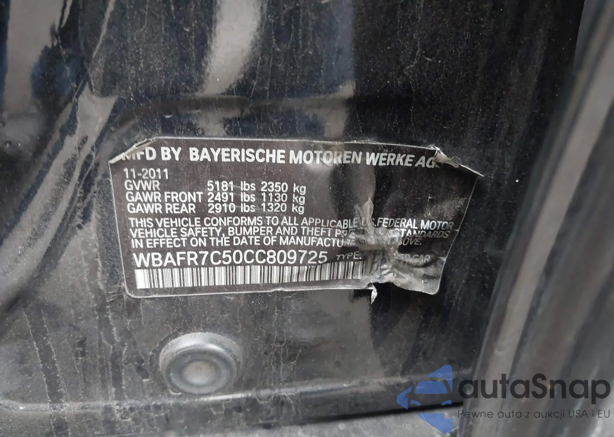 • VIN WBAFR7C50CC809725