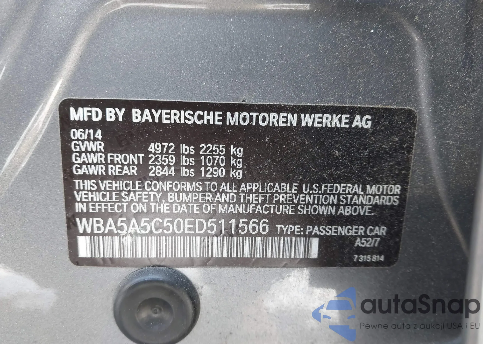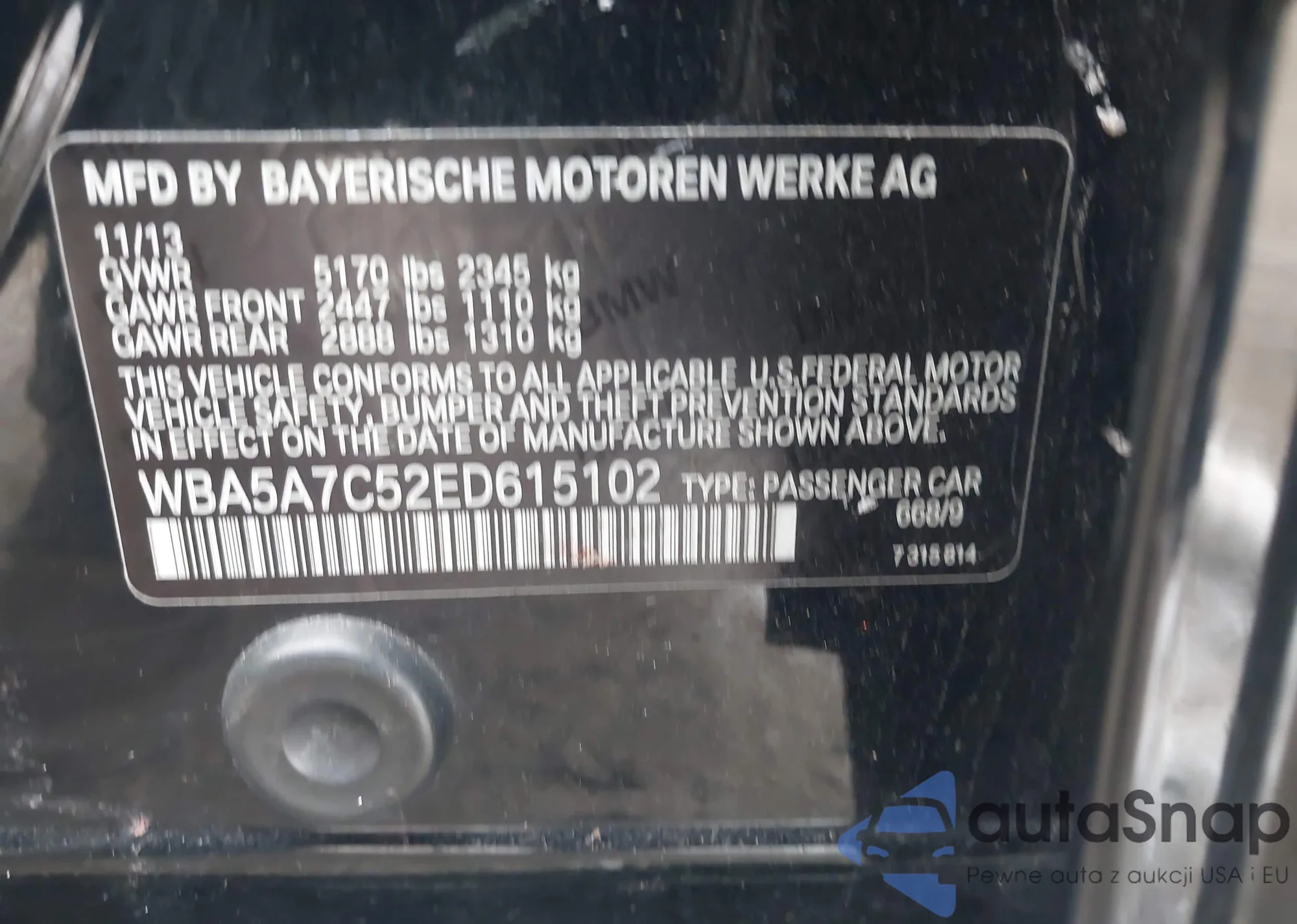 • VIN WBA5A7C52ED615102