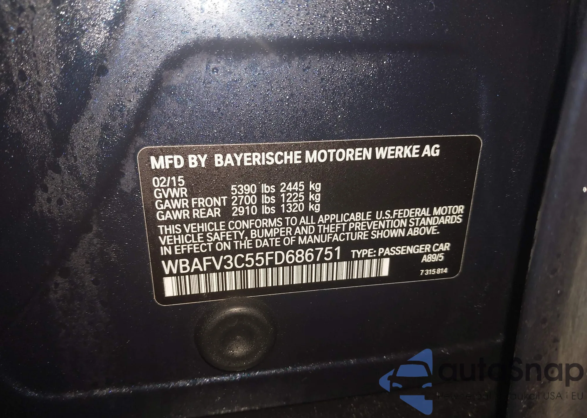 • VIN WBAFV3C55FD686751