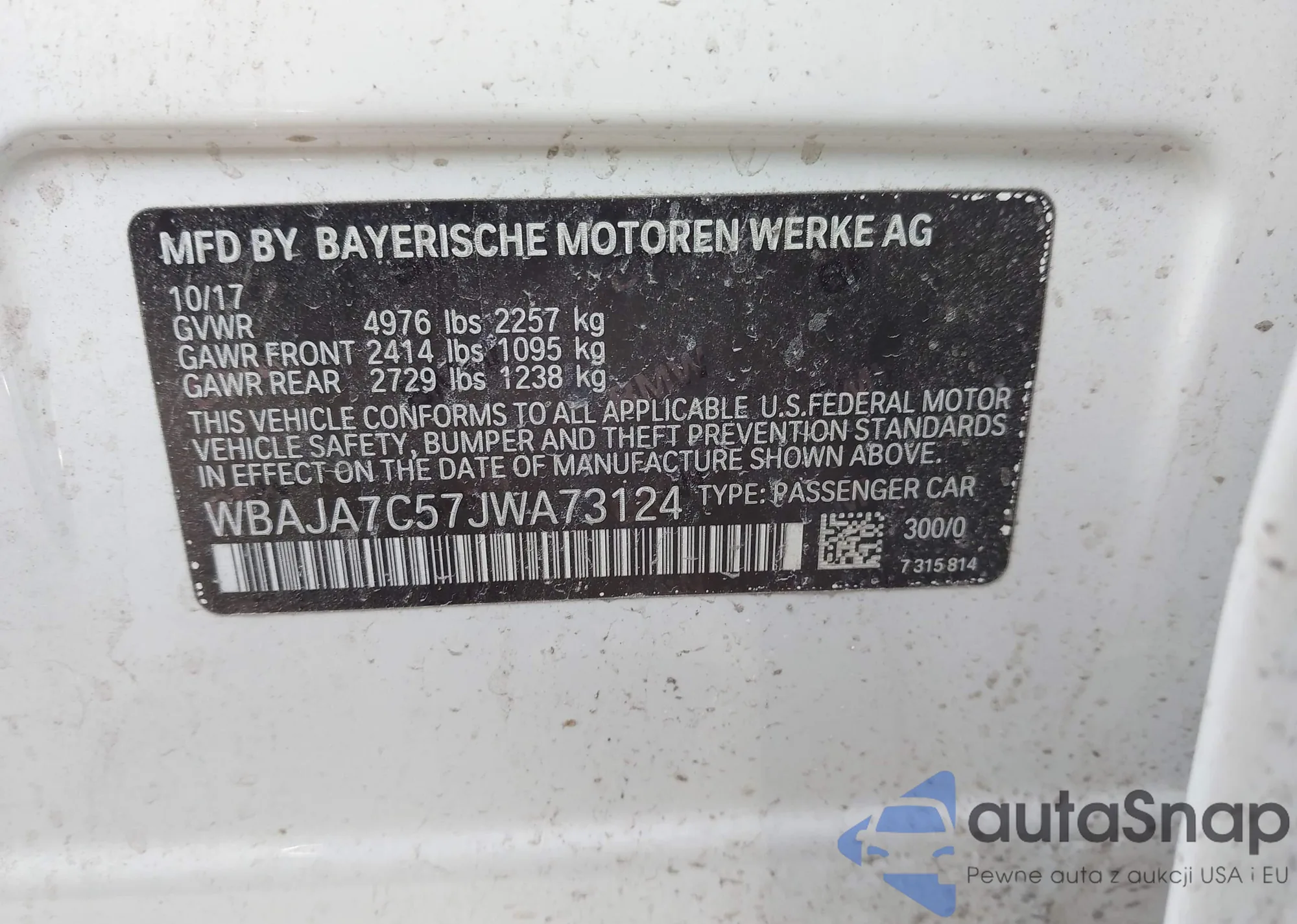 • VIN WBAJA7C57JWA73124
