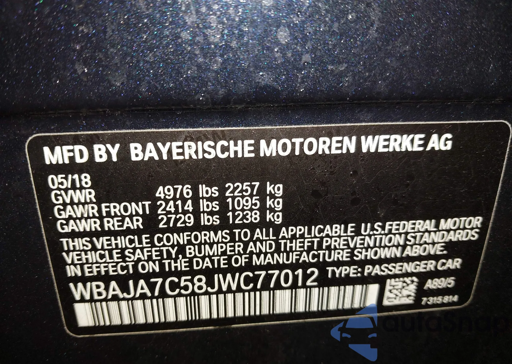 • VIN WBAJA7C58JWC77012