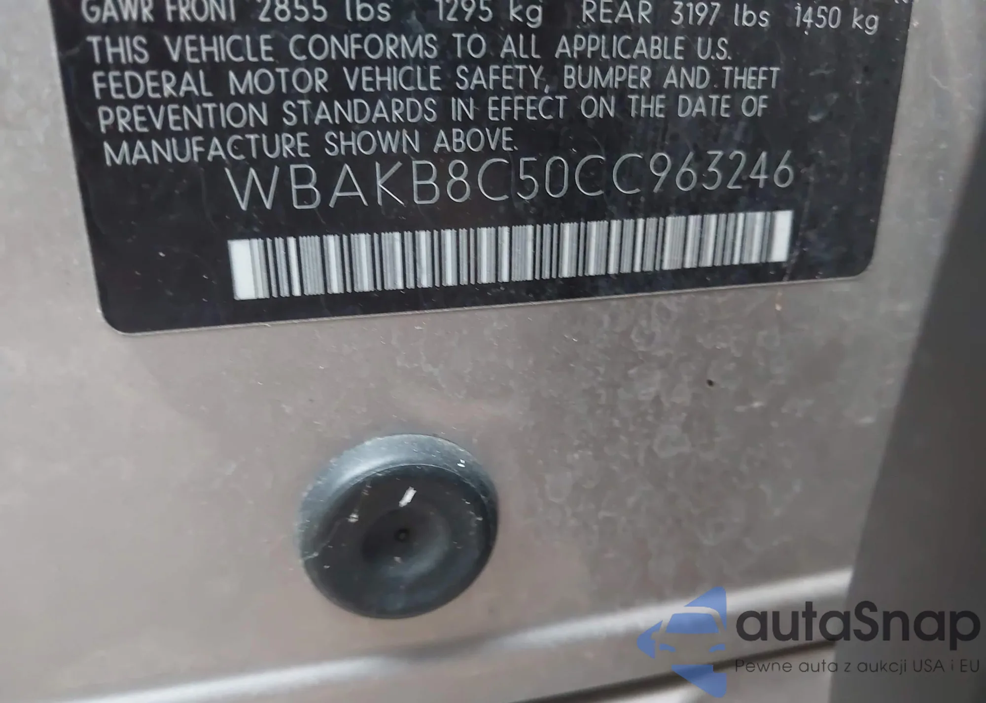 LOT: 44125212 VIN: WBAKB8C50CC963246