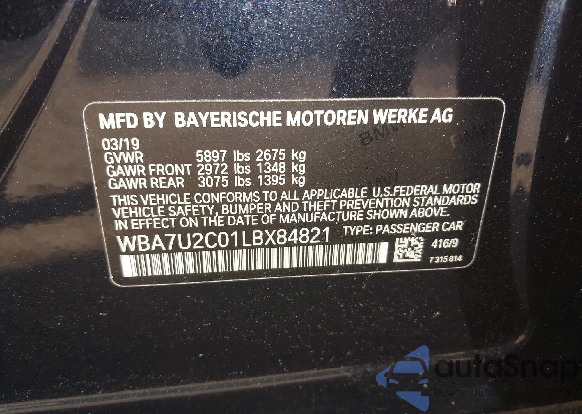 • VIN WBA7U2C01LBX84821