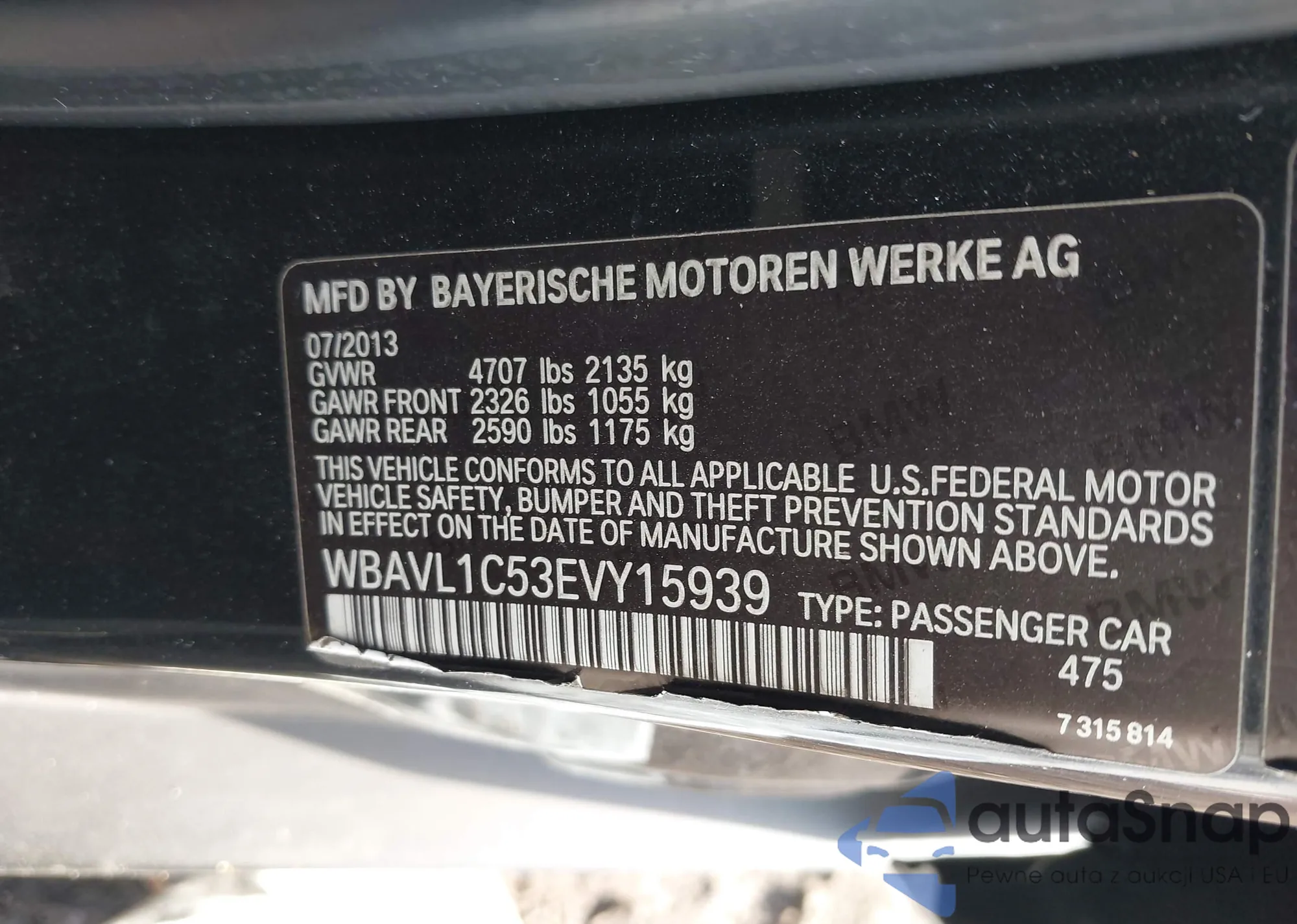 • VIN WBAVL1C53EVY15939