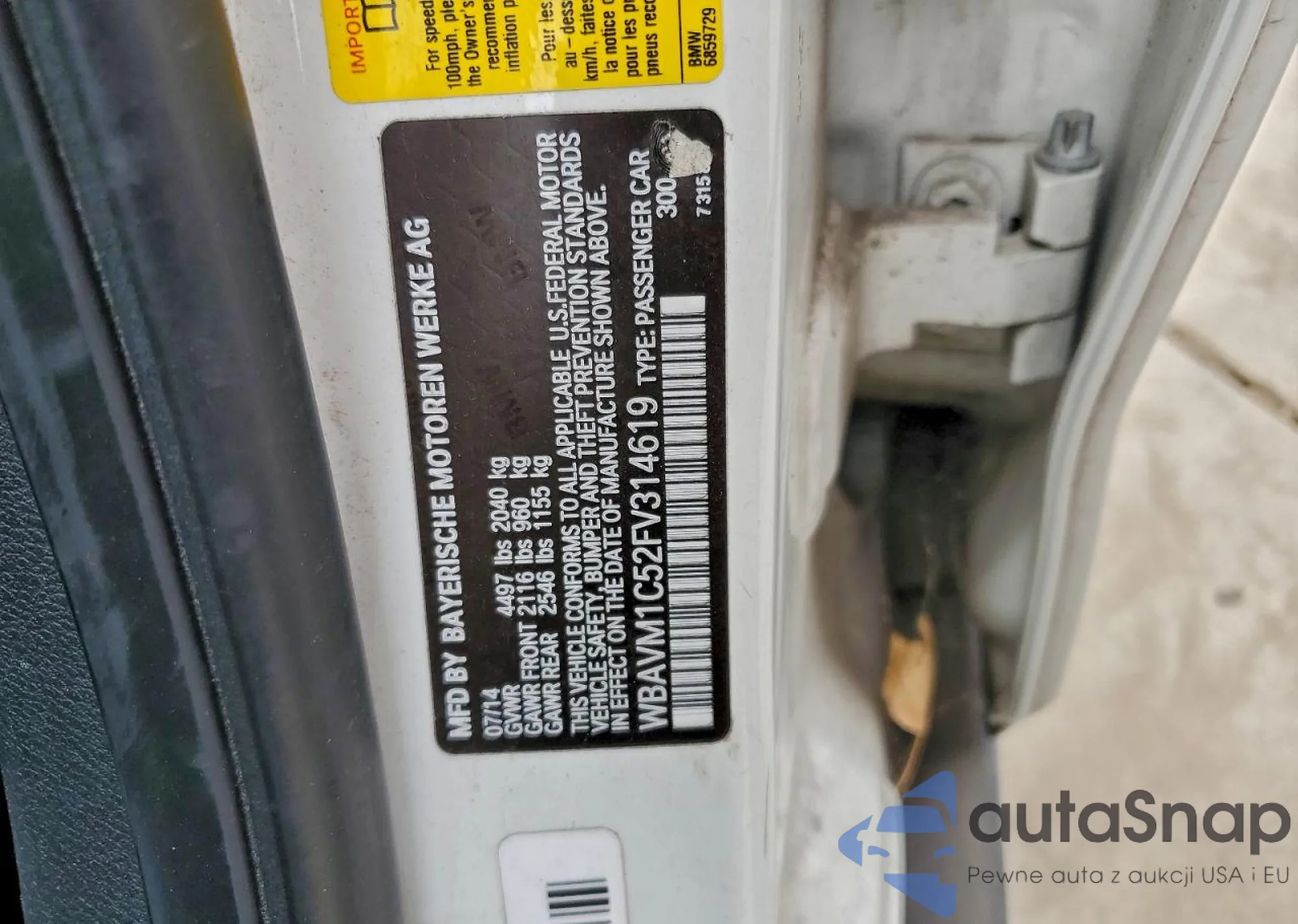 LOT: 93716805 VIN: WBAVM1C52FV314619