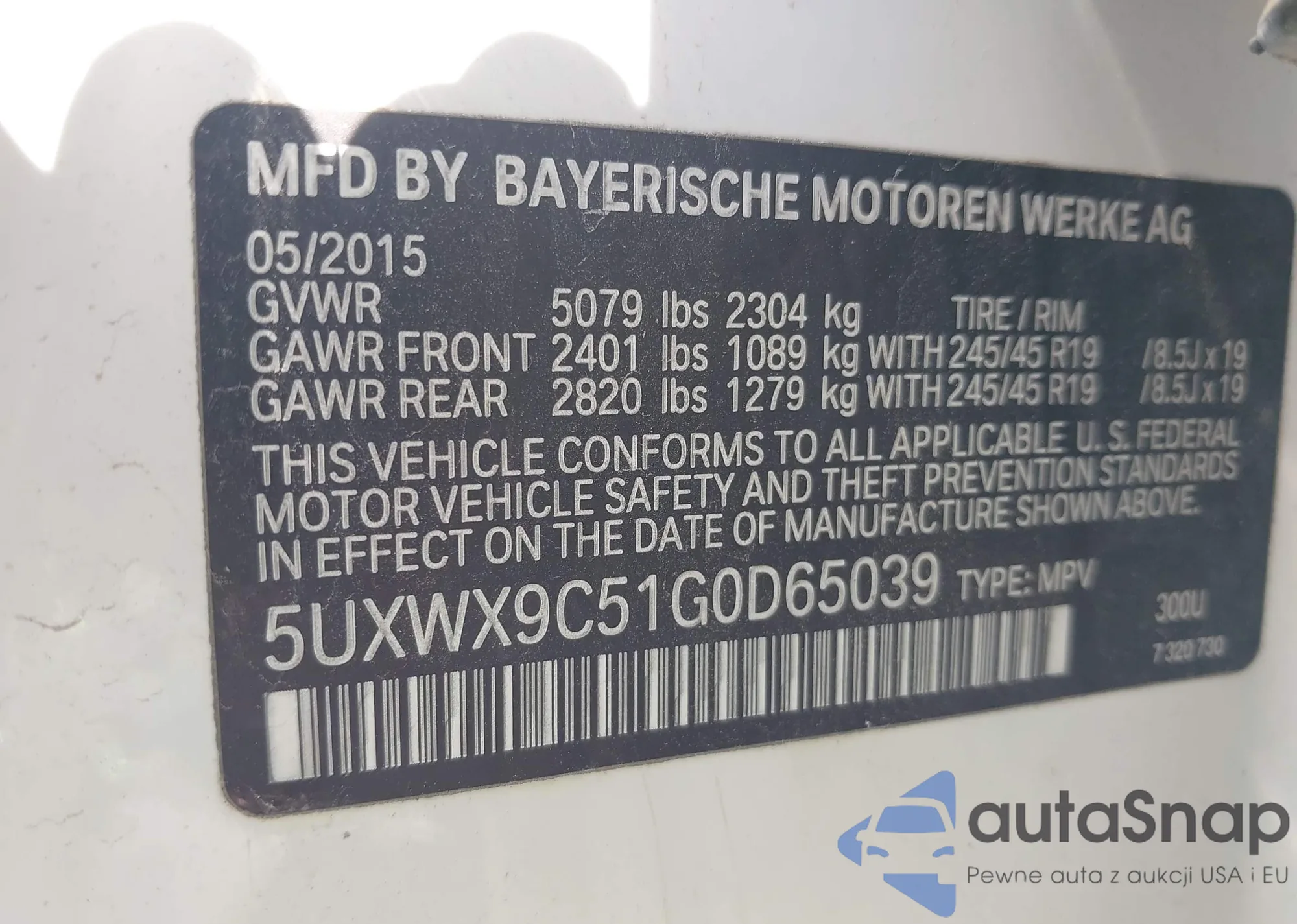 LOT: 85122585 VIN: 5UXWX9C56F0D48493