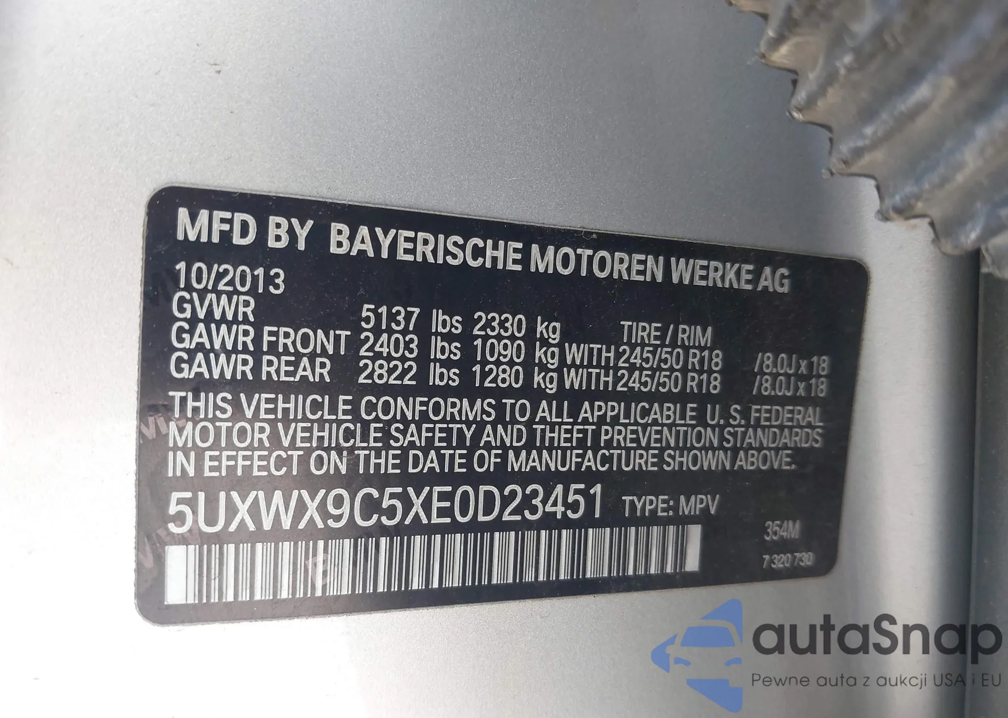 • VIN 5UXWX9C5XE0D23451