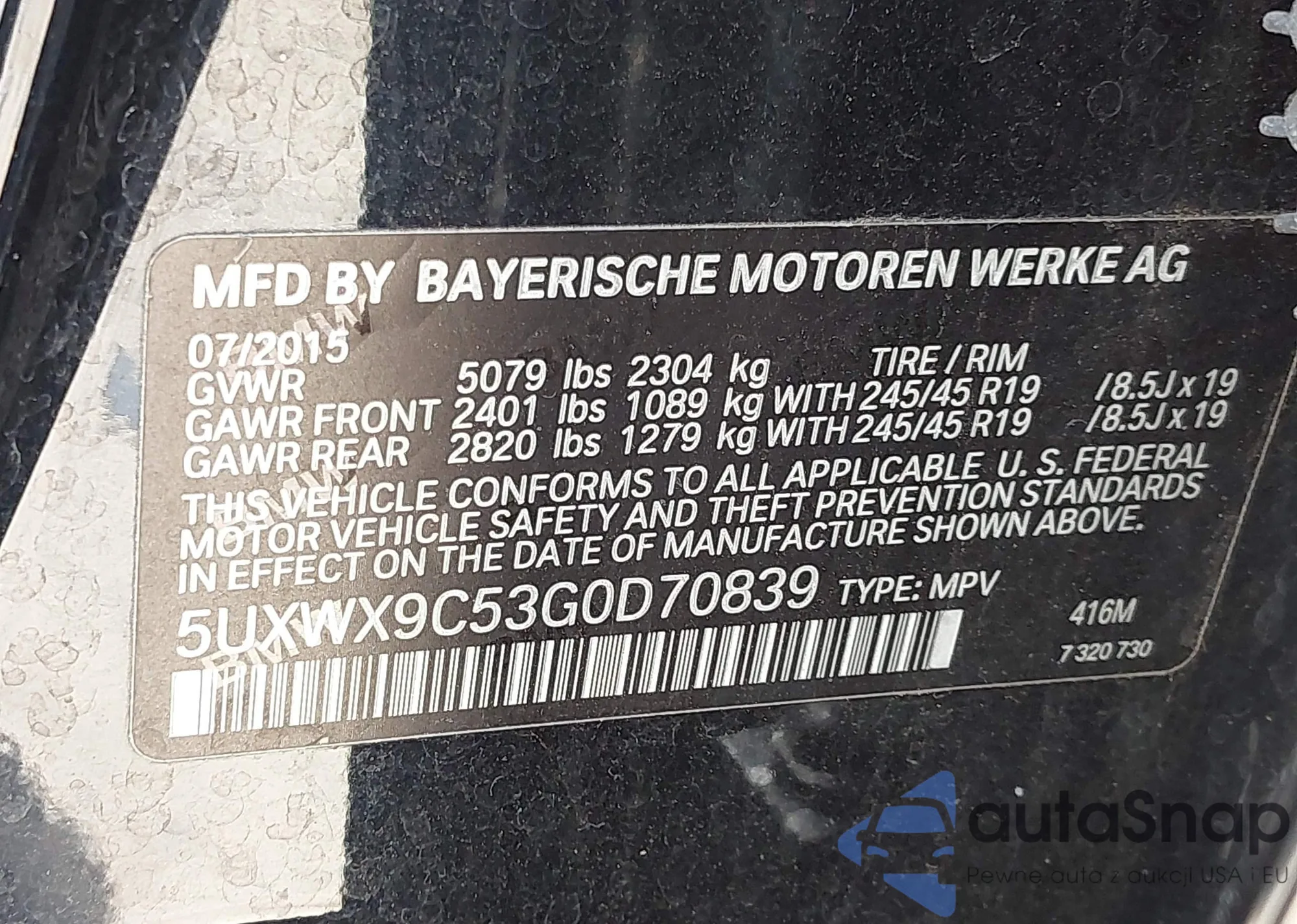 • VIN 5UXWX9C53G0D70839
