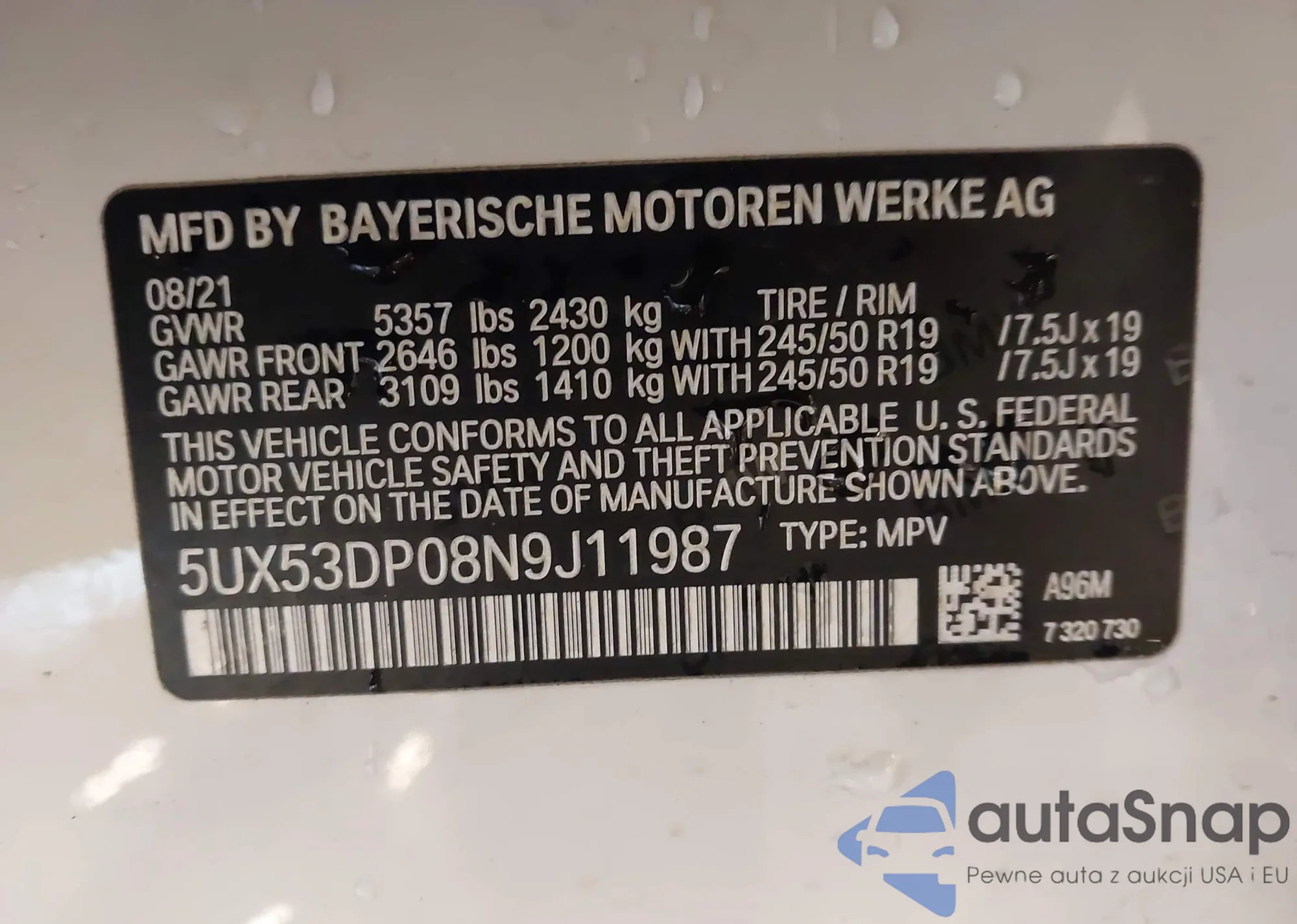 • VIN 5UX53DP08N9J11987