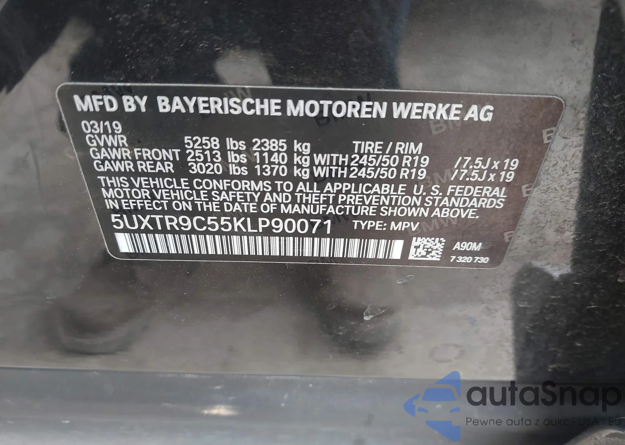 • VIN 5UXTR9C55KLP90071