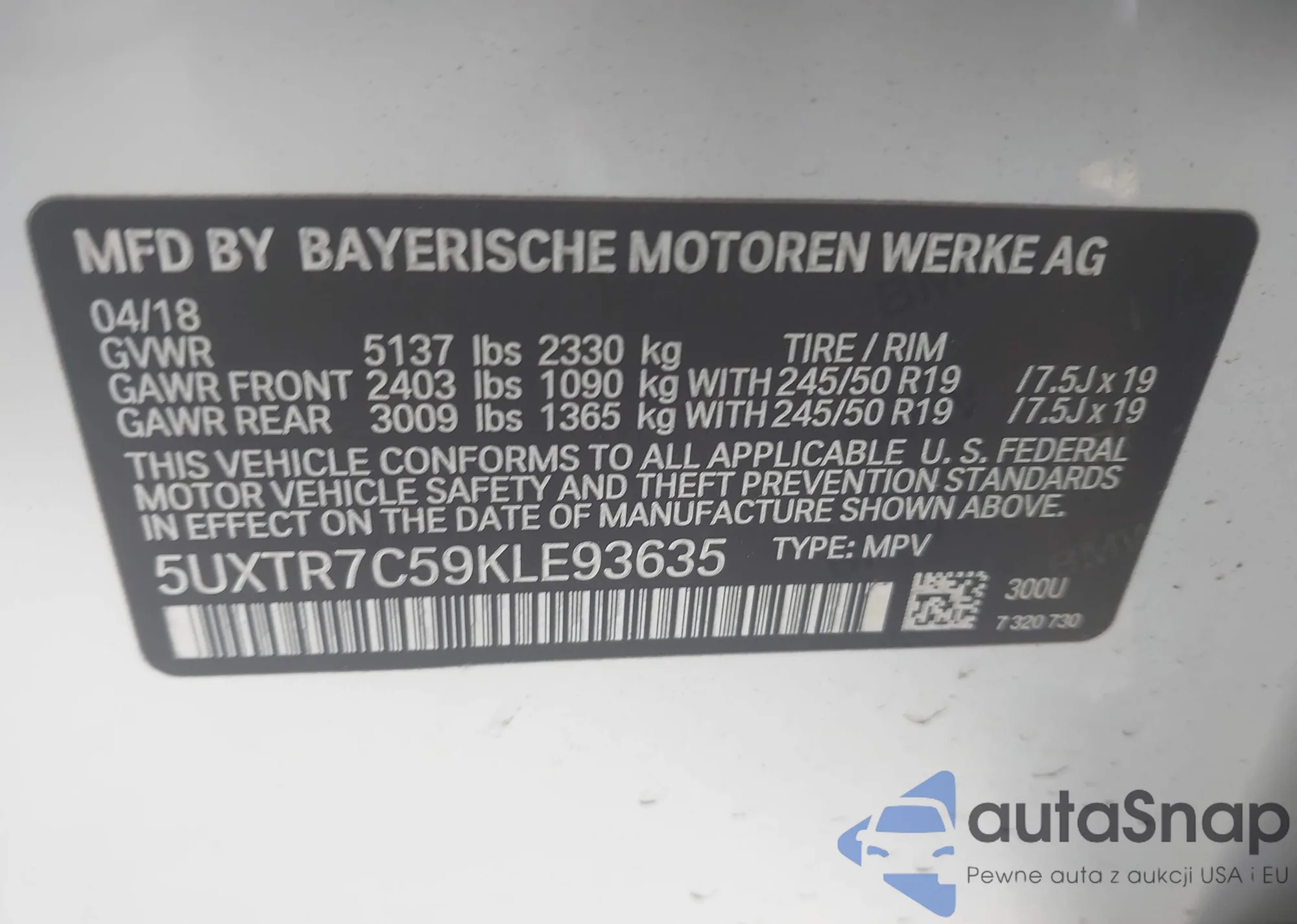 • VIN 5UXTR7C59KLE93635