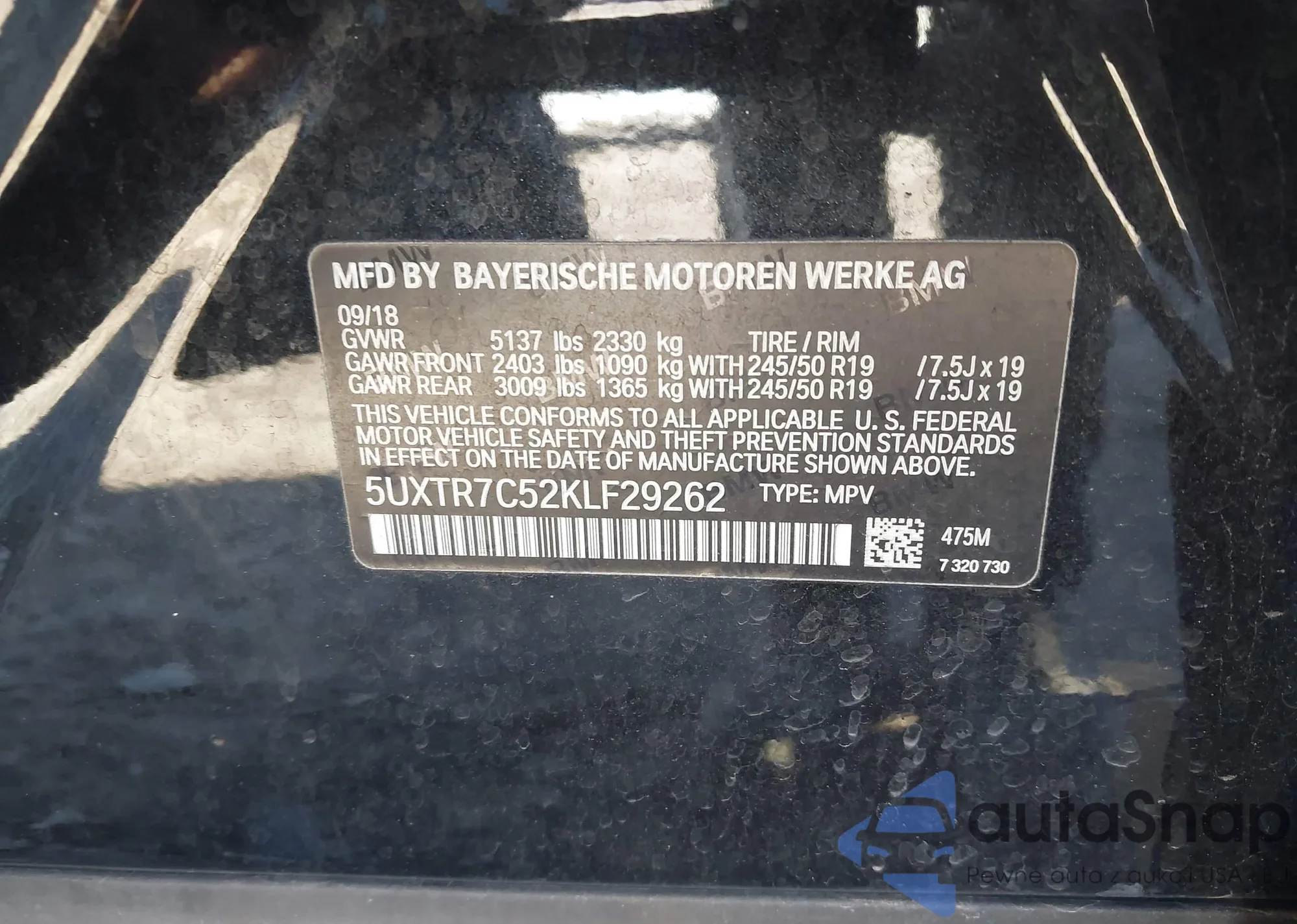 • VIN 5UXTR7C52KLF29262