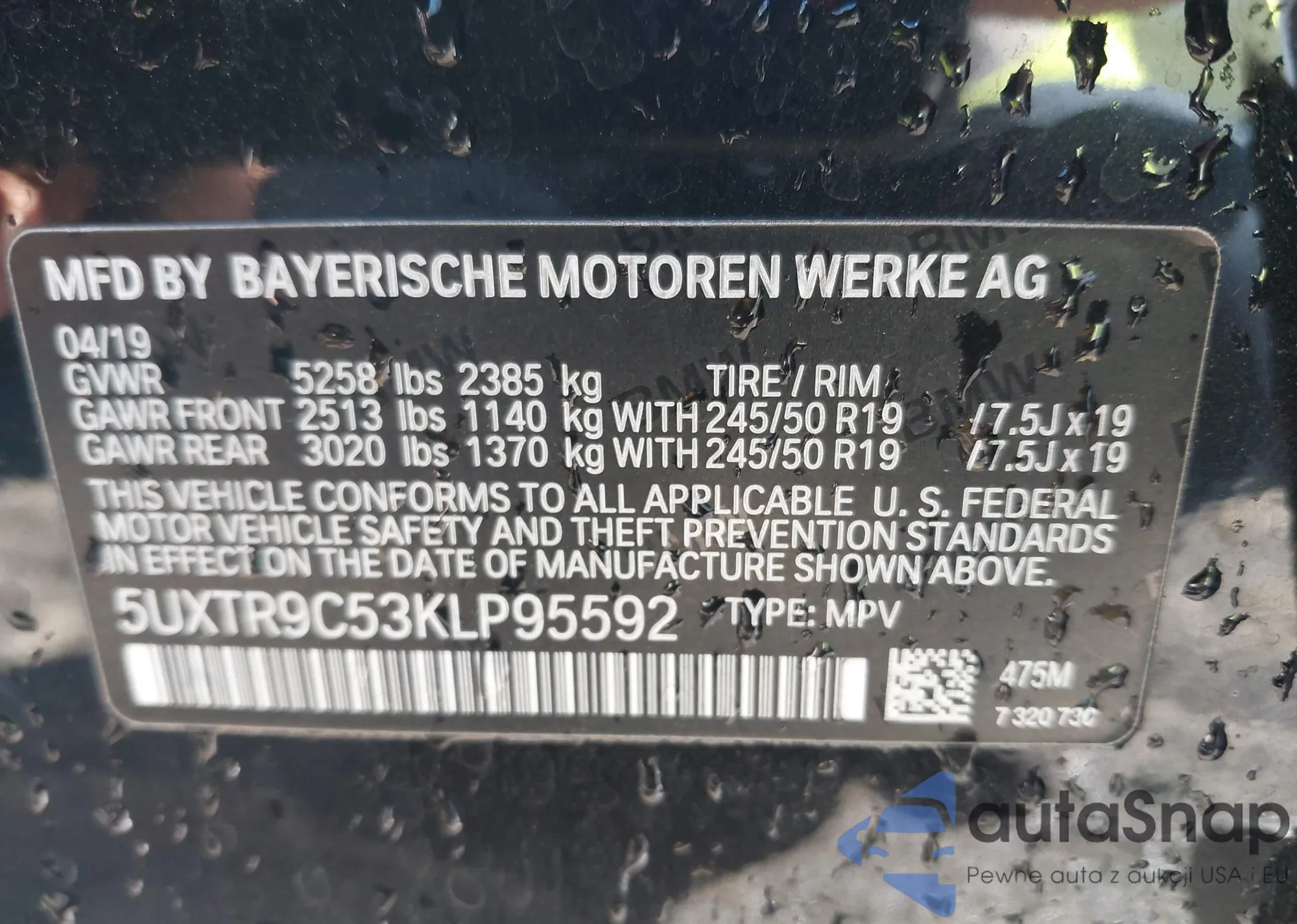 • VIN 5UXTR9C53KLP95592