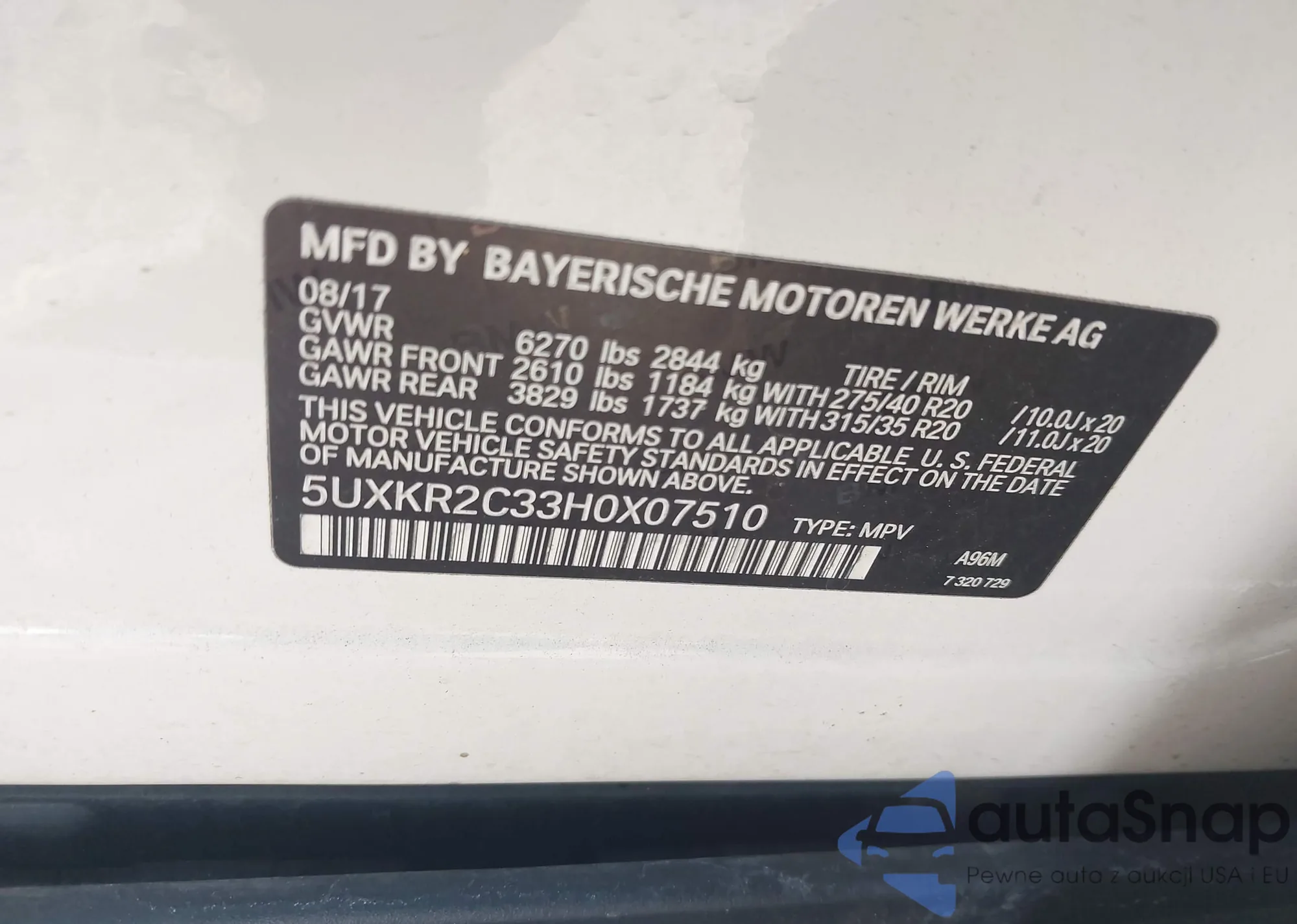 • VIN 5UXKR2C33H0X07510