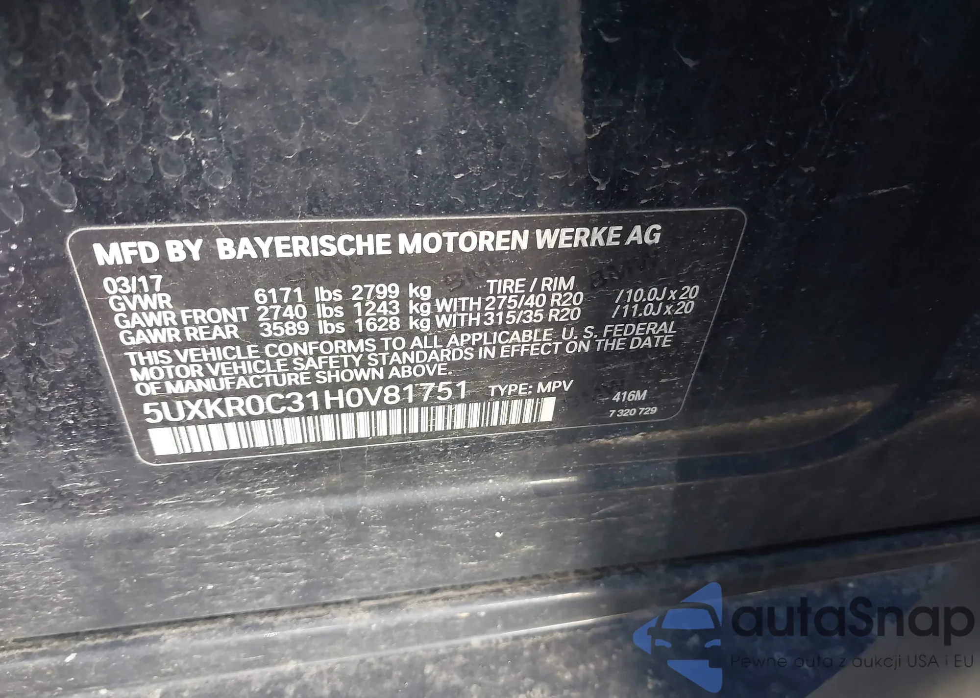• VIN 5UXKR0C31H0V81751