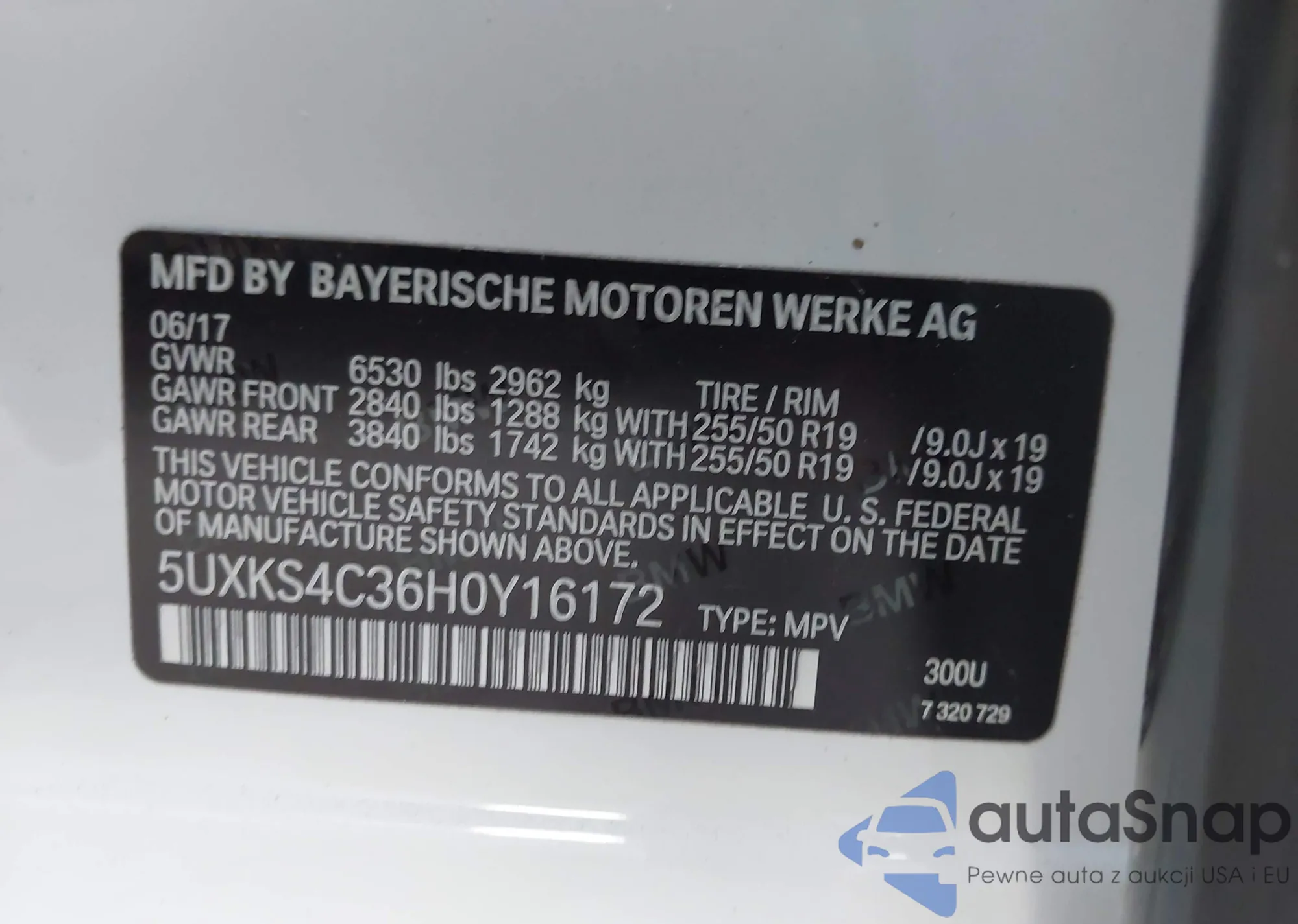 • VIN 5UXKS4C36H0Y16172
