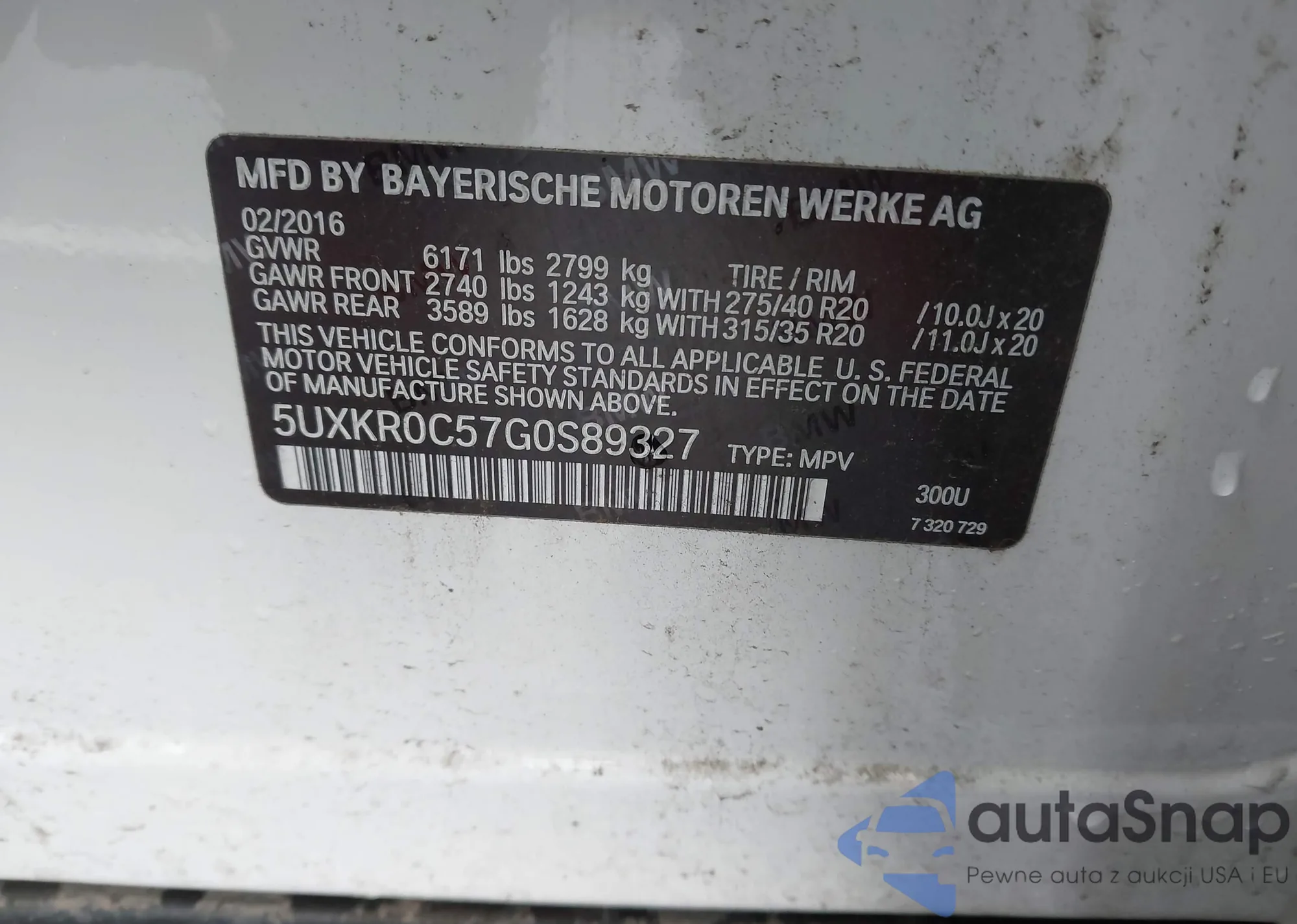• VIN 5UXKR0C57G0S89327