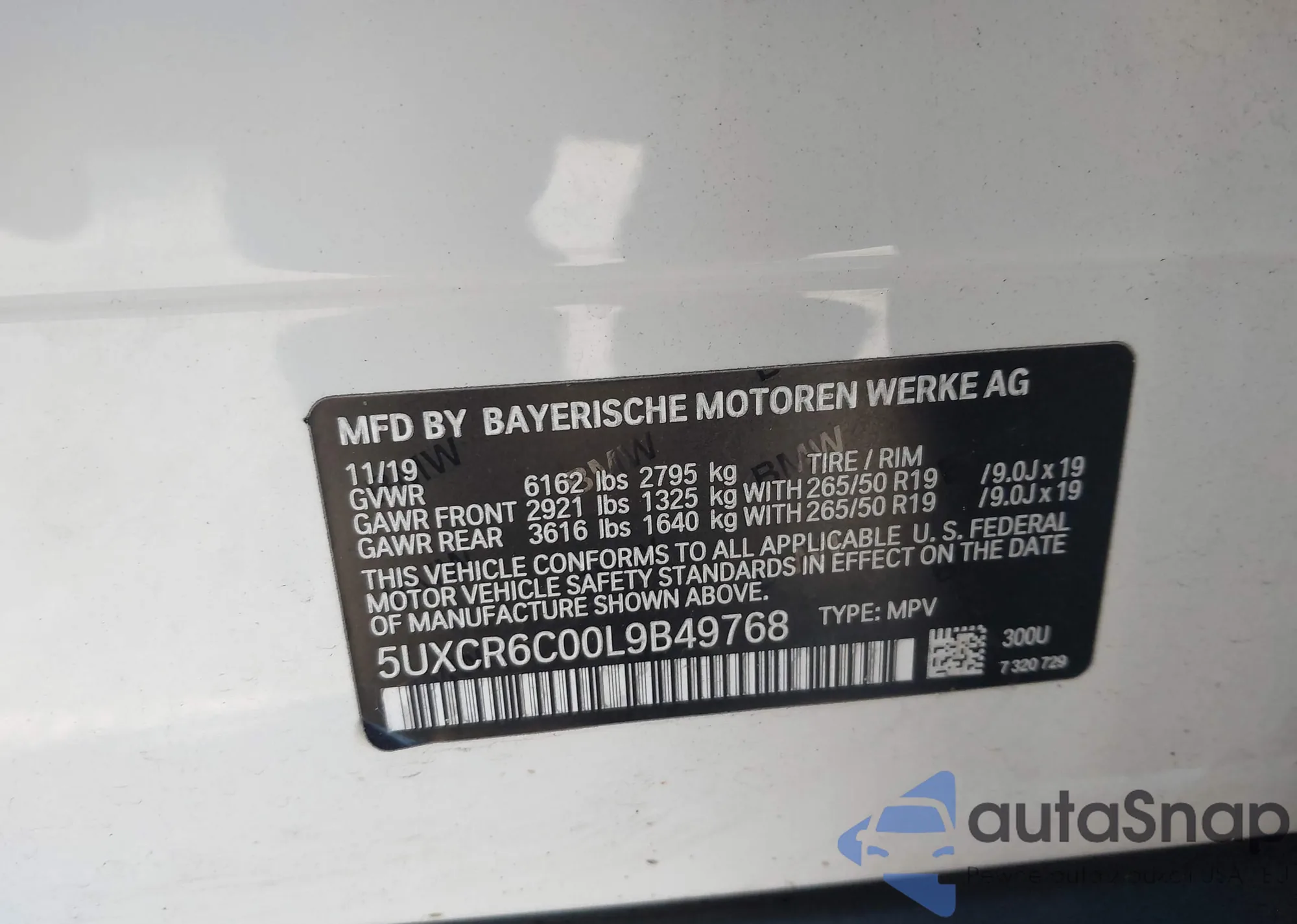 • VIN 5UXCR6C00L9B49768