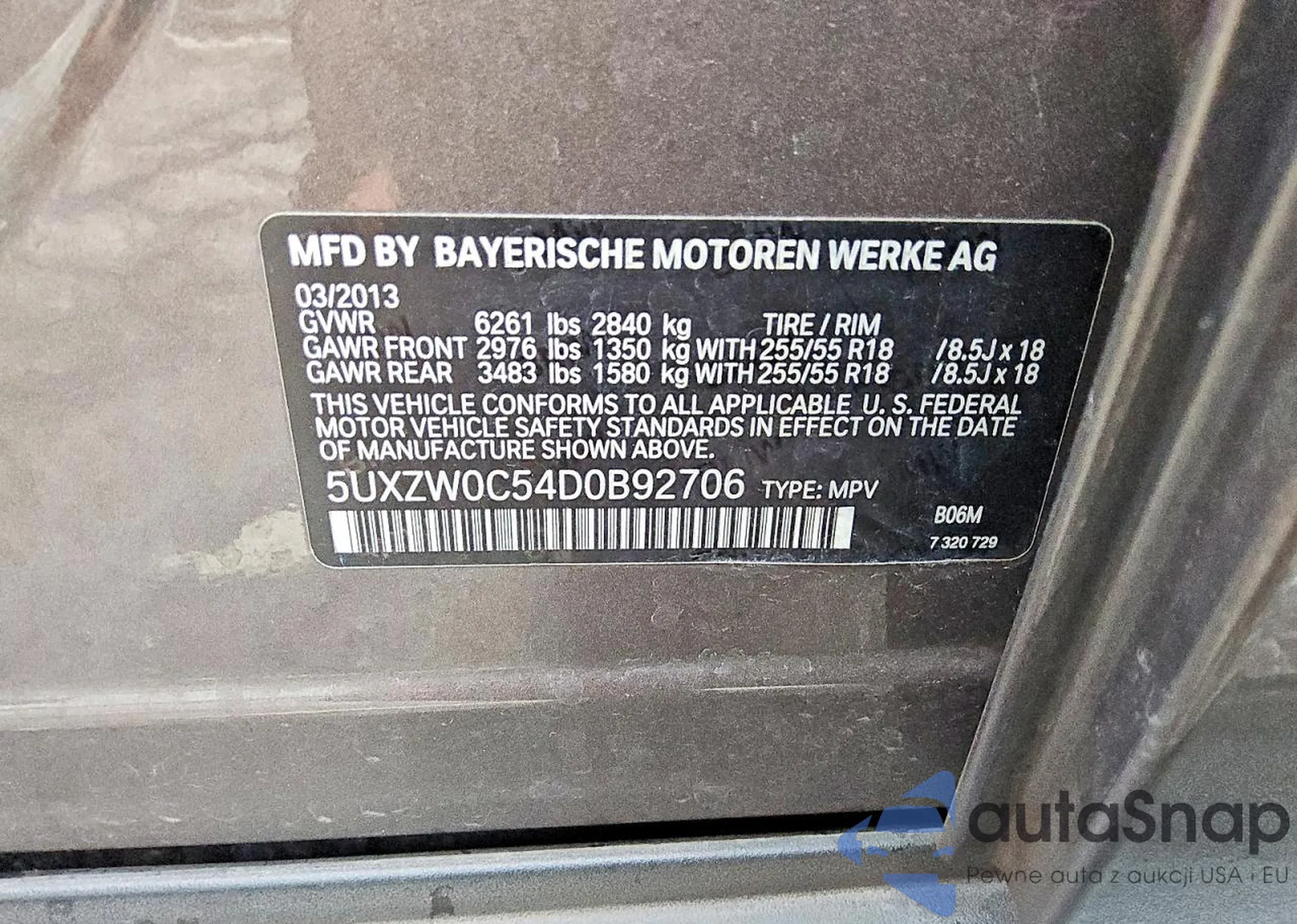• VIN 5UXZW0C54D0B92706