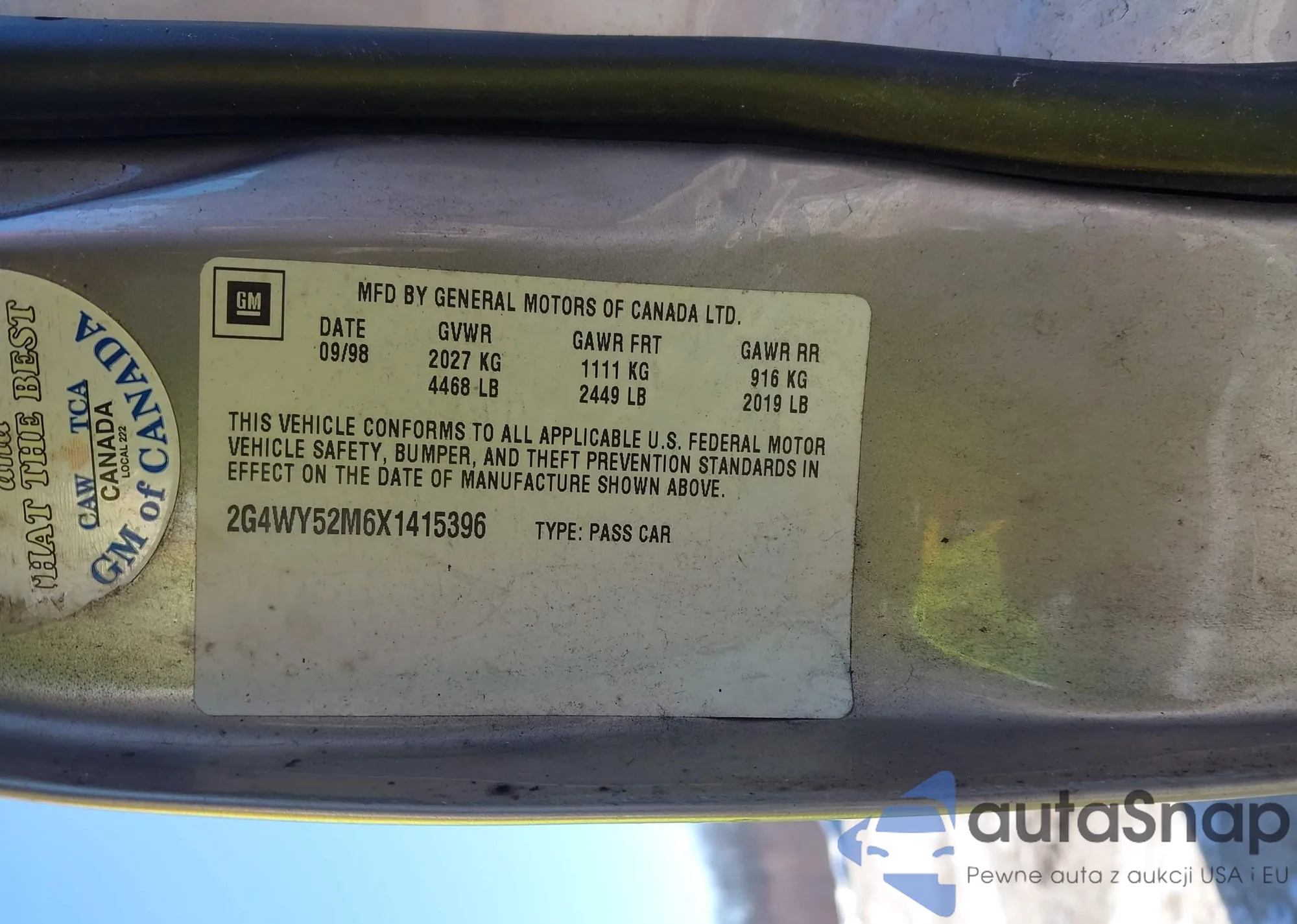 • VIN 2G4WY52M6X1415396