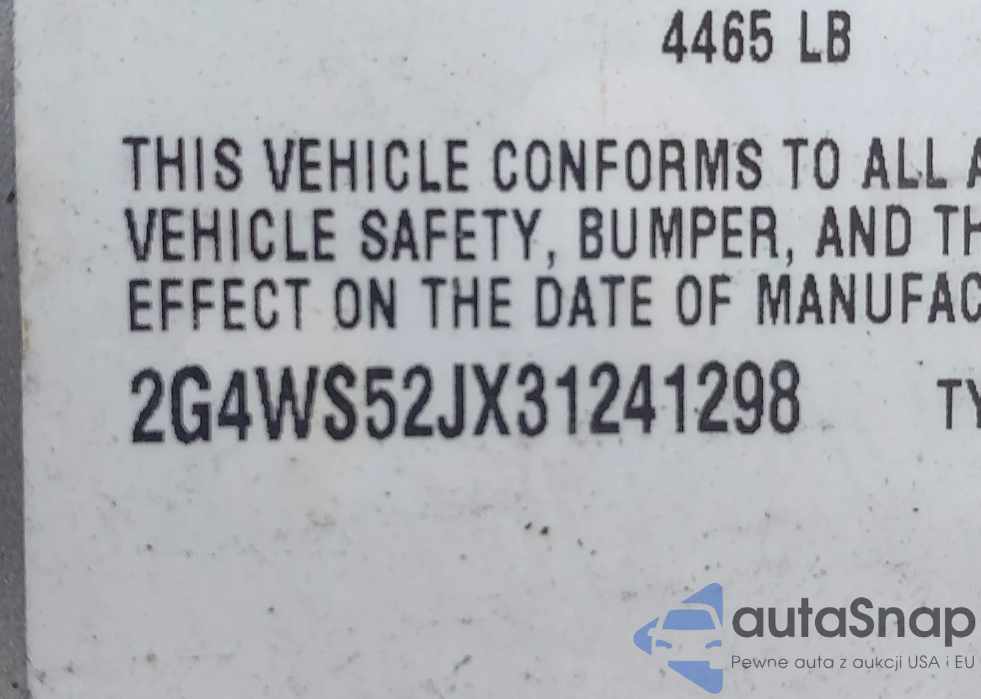 LOT: 44278821 VIN: 2G4WS52JX31241298
