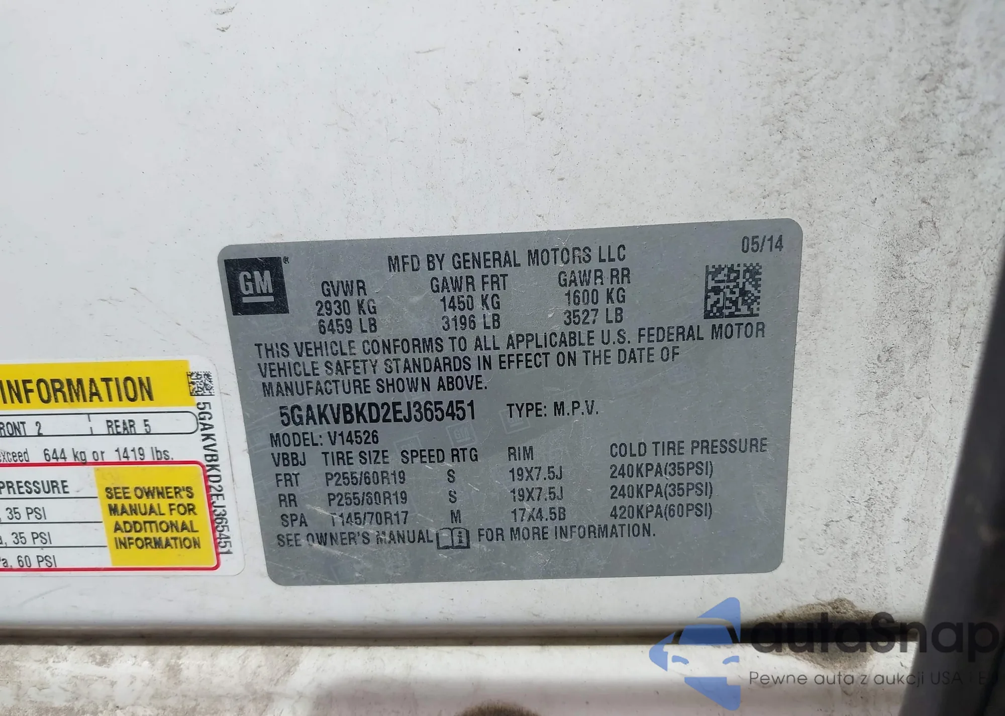 • VIN 5GAKVBKD2EJ365451