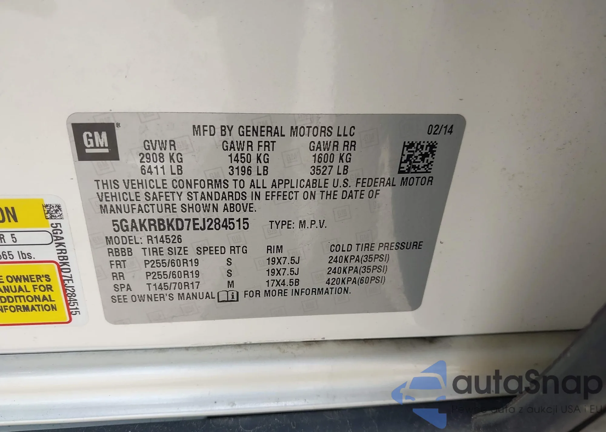 • VIN 5GAKRBKD7EJ284515