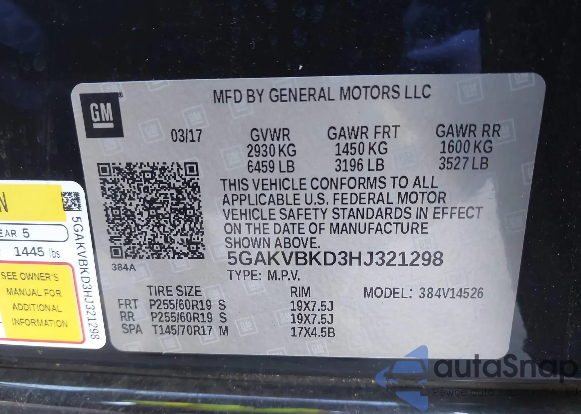 • VIN 5GAKVBKD3HJ321298